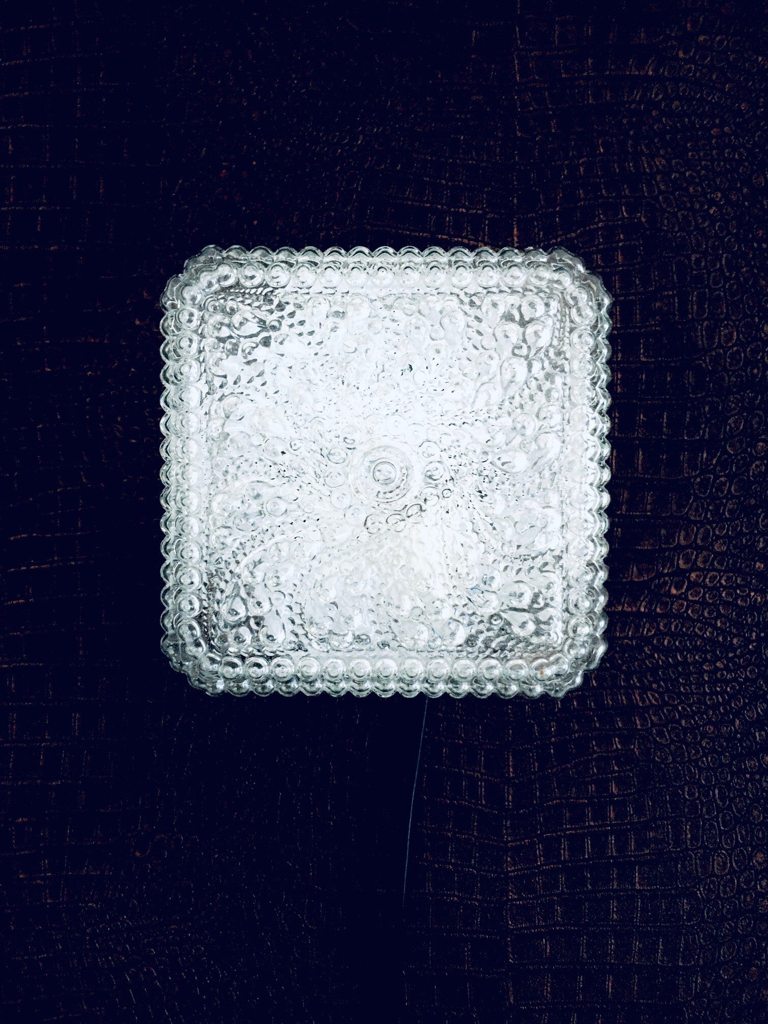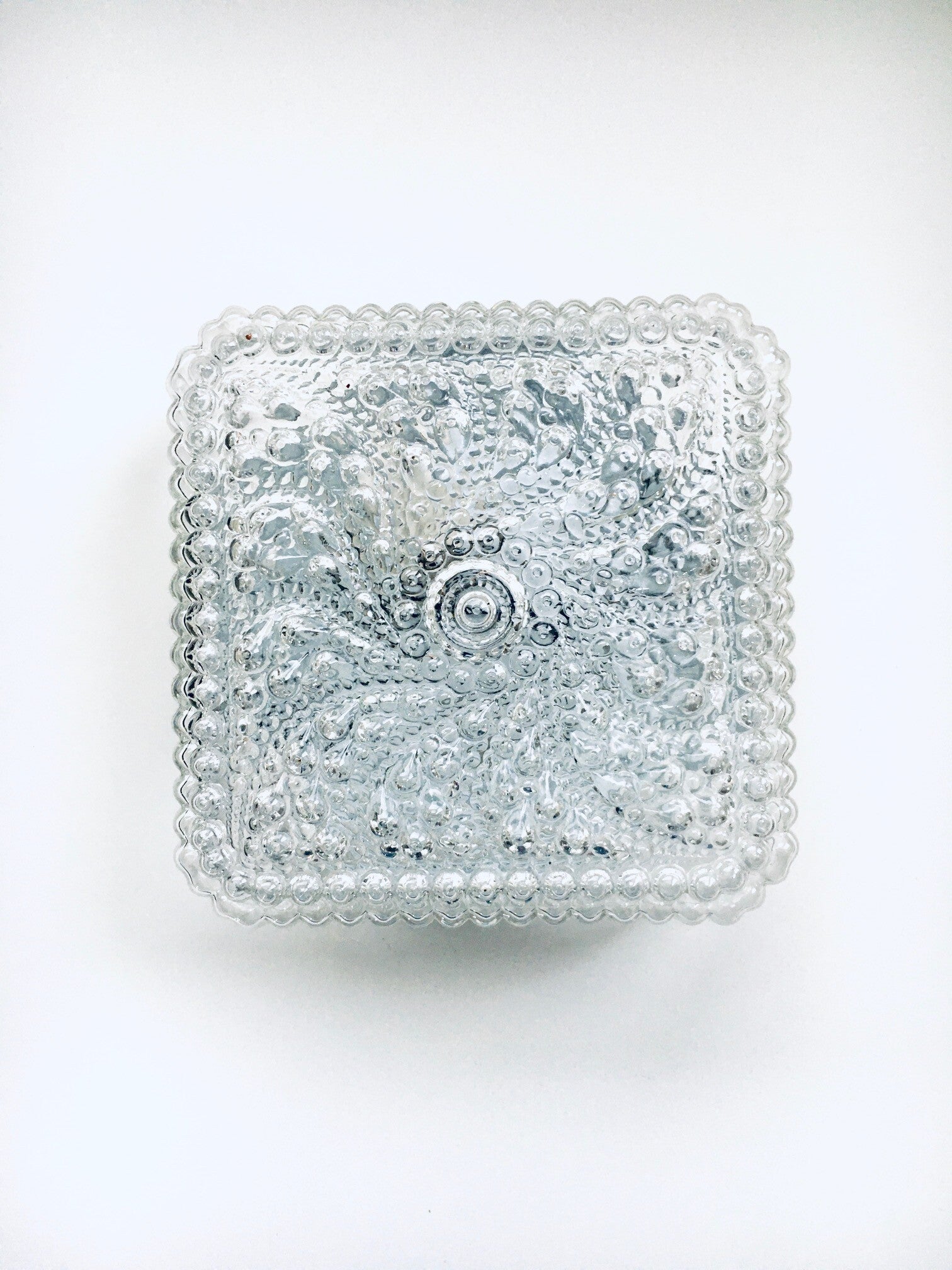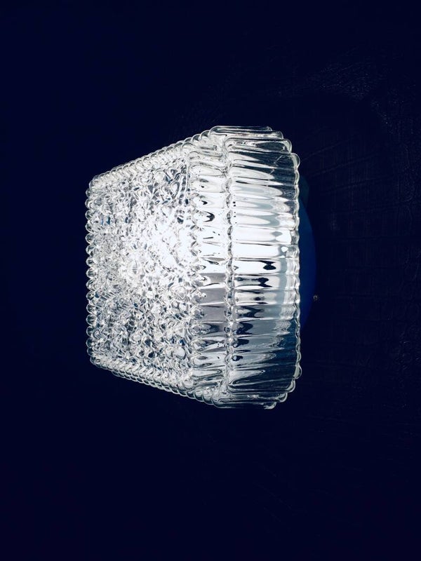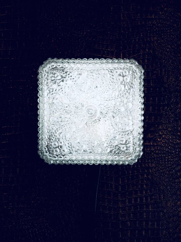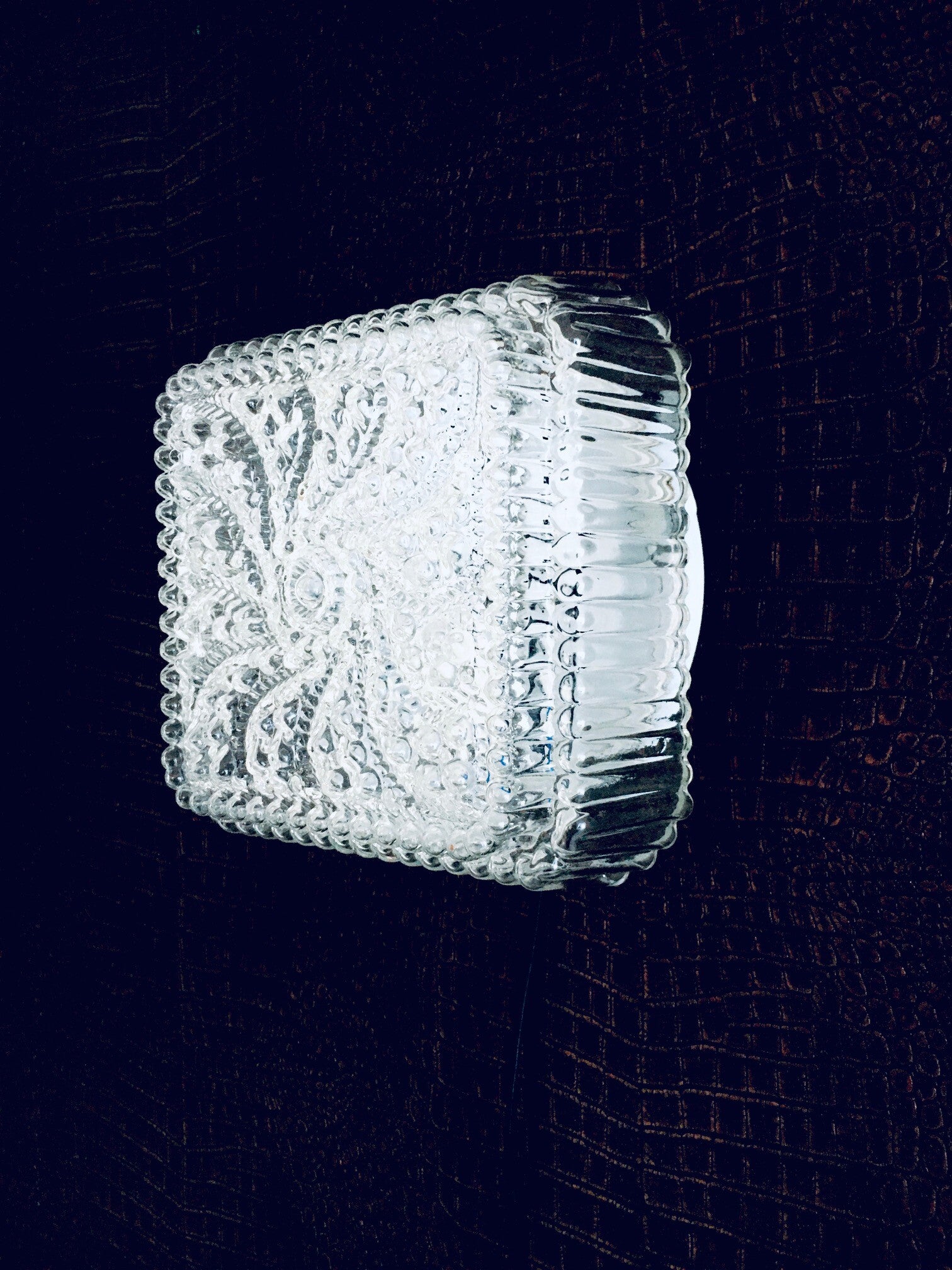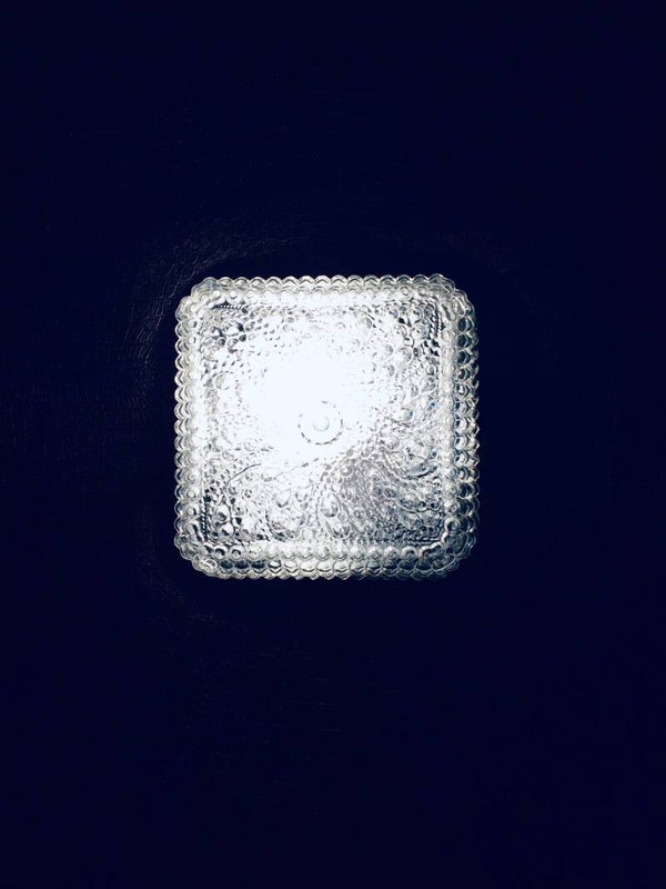 Vintage Midcentury Modern Design Square Clear Glass Sconce Wall Lamp by Massive, Belgium 1970's. In very good condition. Measures 19cm x 19cm x 11cm.