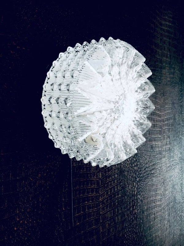 Vintage Midcentury Modern Design Clear Glass Wall lamp Sconce by RZB Leuchten, Germany 1960's. Smaller model. In very good condition. Measures 20cm x 20cm x 11,5cm.