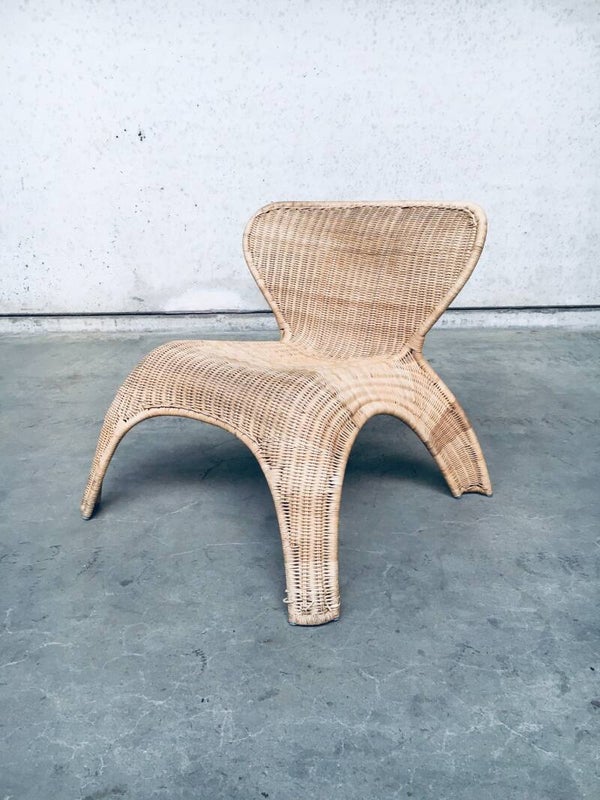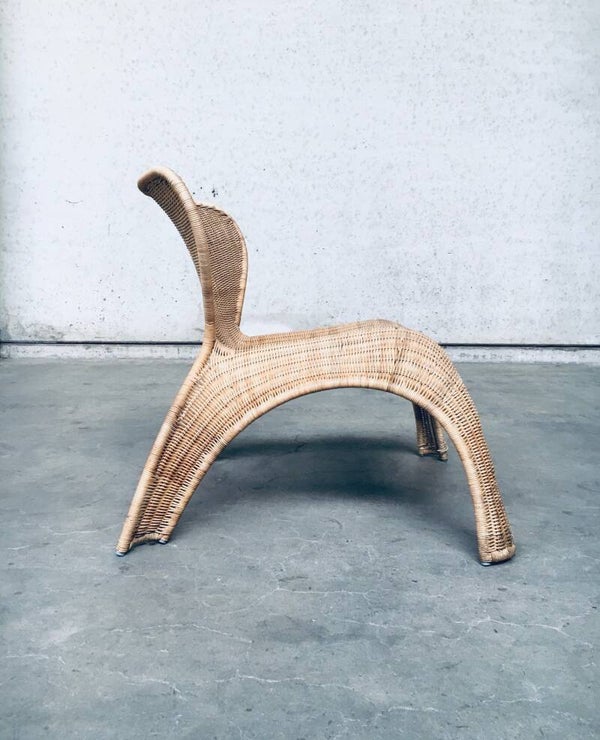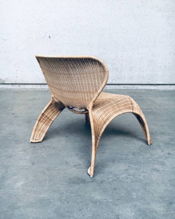 Vintage Design by Ikea Rattan Wicker lounge Chair, made in the 1990's. Cool shaped garden, terras or home lounge chair. In very good condition. With original label on bottom frame. Measures 68cm x 70cm x 73cm. Seat hight is 38cm.