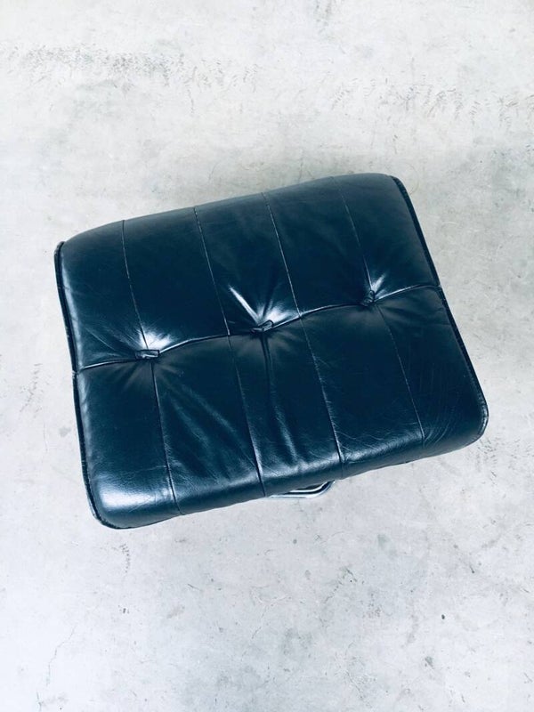 Midcentury Modern Design Black Leather Hocker Stool 1960's