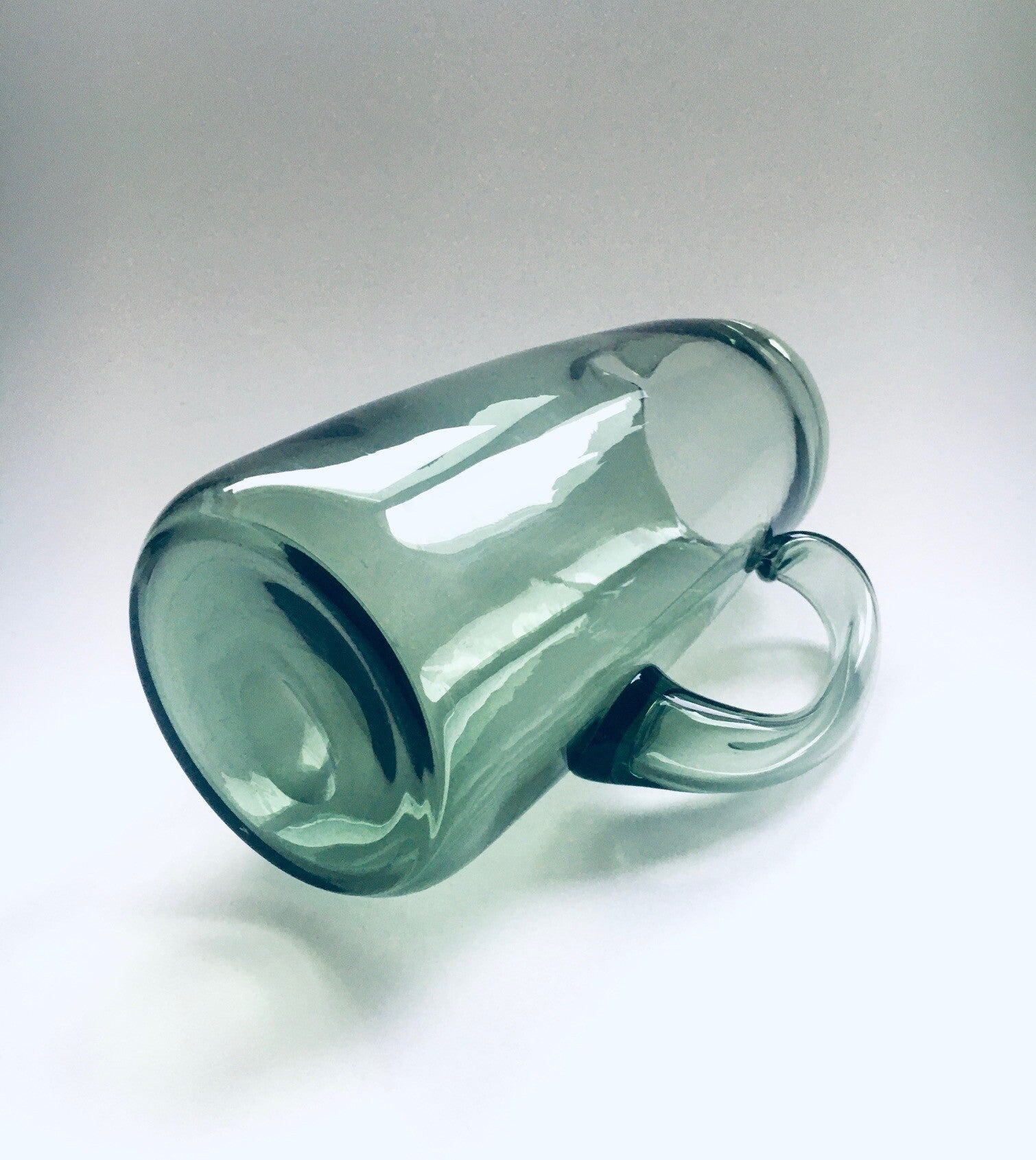 Vintage Scandinavian Design Handblown Green Glass Jug 1960's