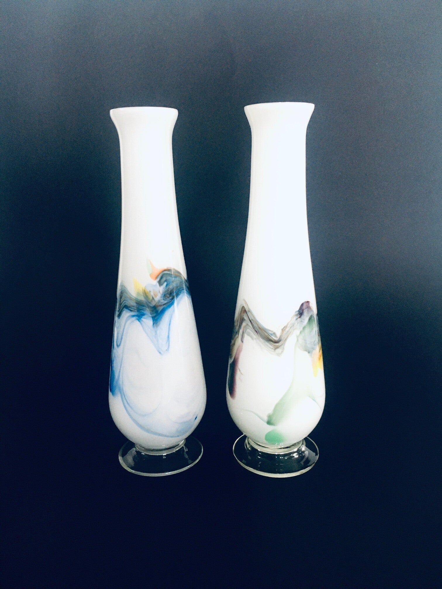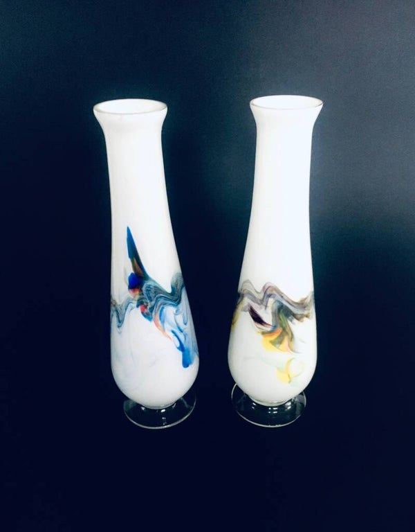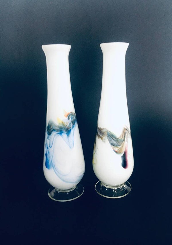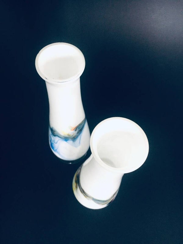 Vintage Swirl Colored Glass Vase set, Murano Italy 1960's
