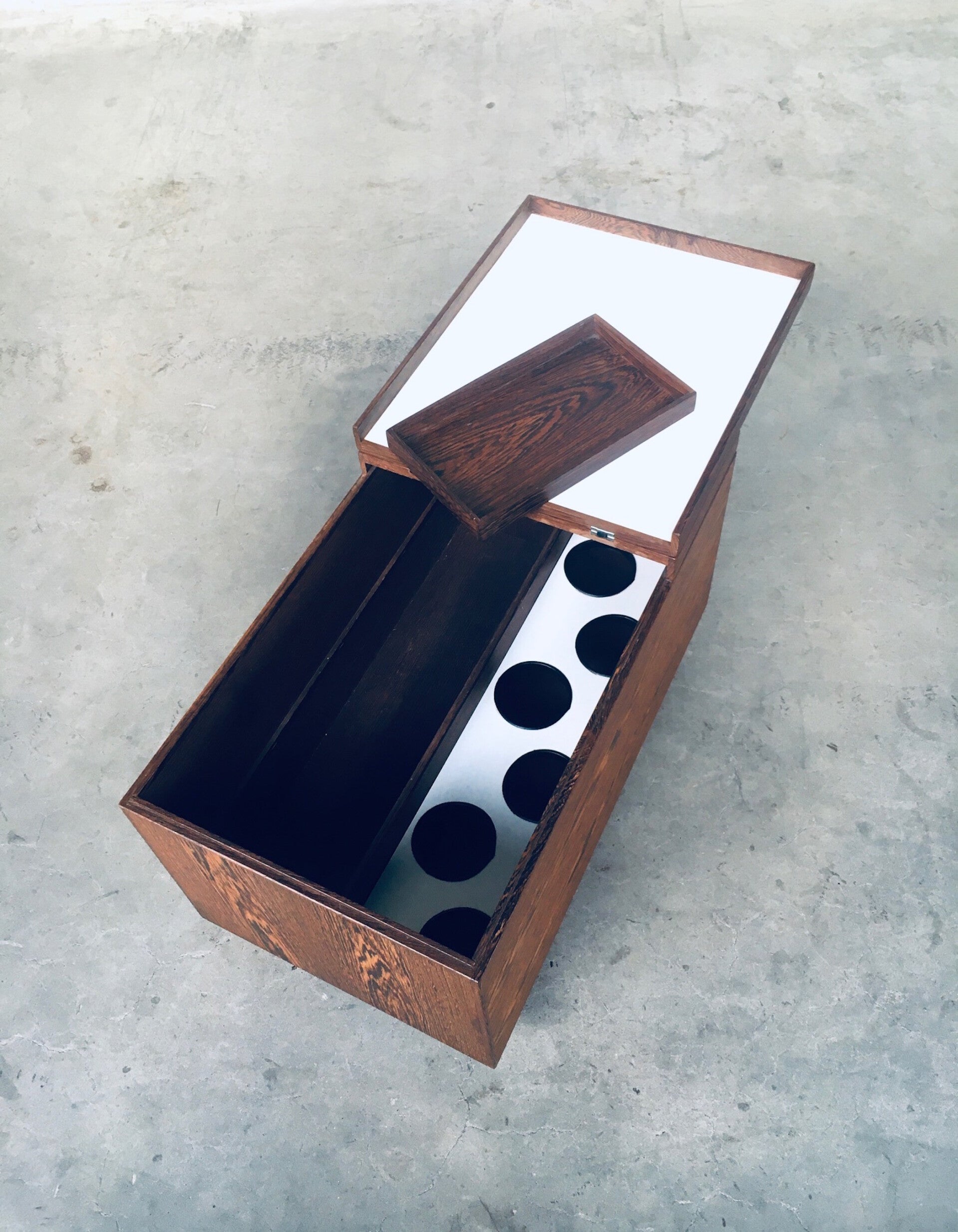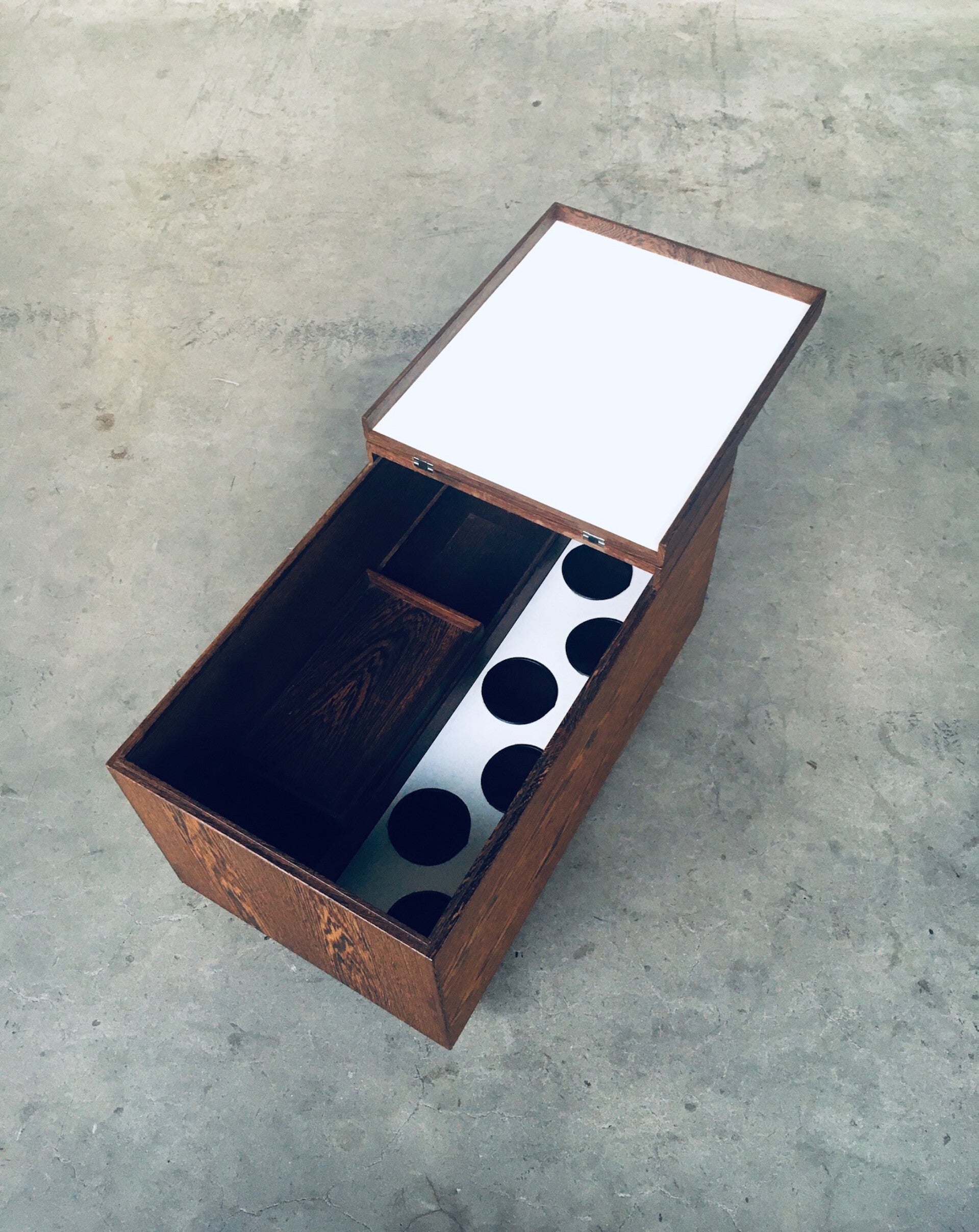 Vintage 1960's Midcentury Modern Scandinavian Design Dry Liquor Bar Box Trolley by Poul Norreklit for Dyrlund, Denmark 1960's. Wengé wood with white laminated parts. Box on wheels. In very good condition. Measures 48cm high x 78cm long x 45cm wide. (bottles not included)