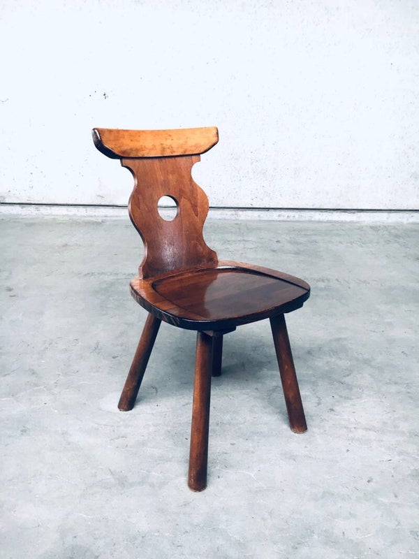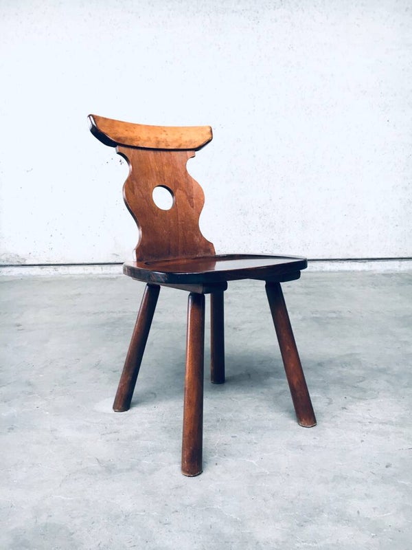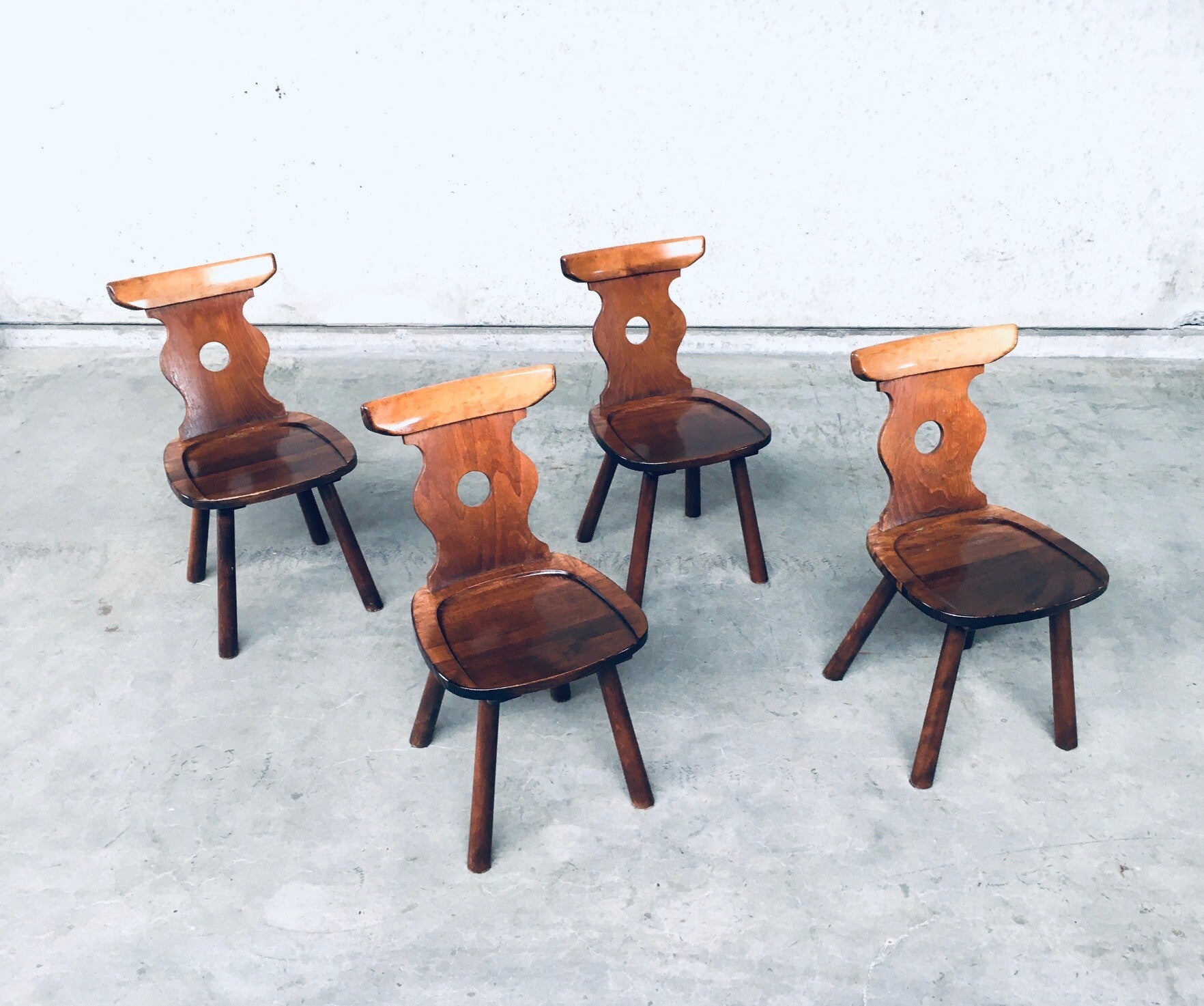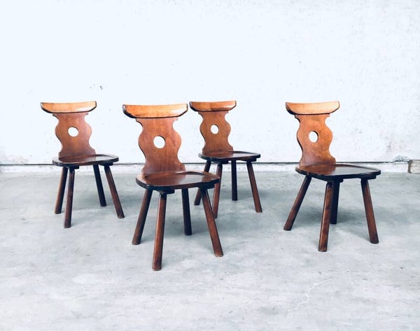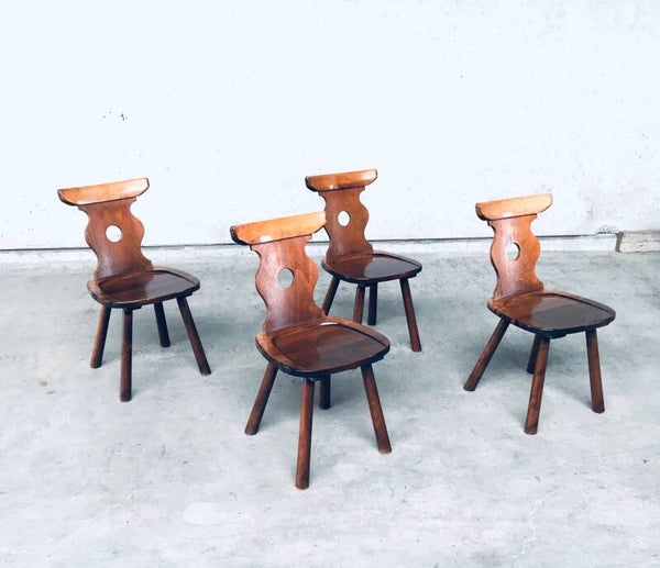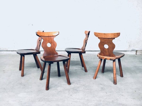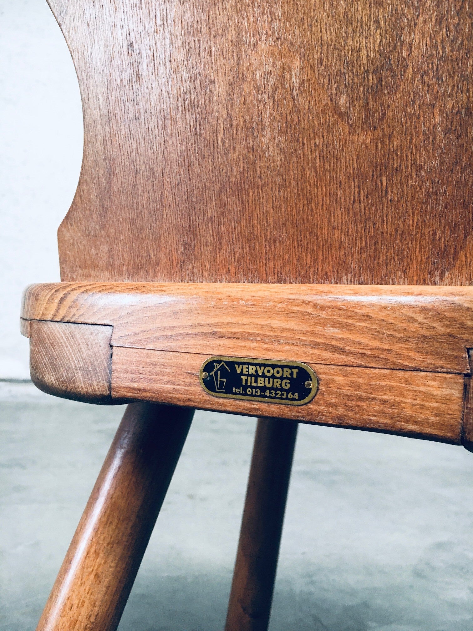 Vintage Midcentury Modern Brutalist Design set of 4 hard wooden dining chairs by Vervoort, Tilburg, Netherlands 1960's. All chairs are marked with original label, model number 927. Very nice patina on chairs. All chairs are in very good condition. Sturdy craftsman made. Each Chair measures 84cm x 44cm x 44cm.