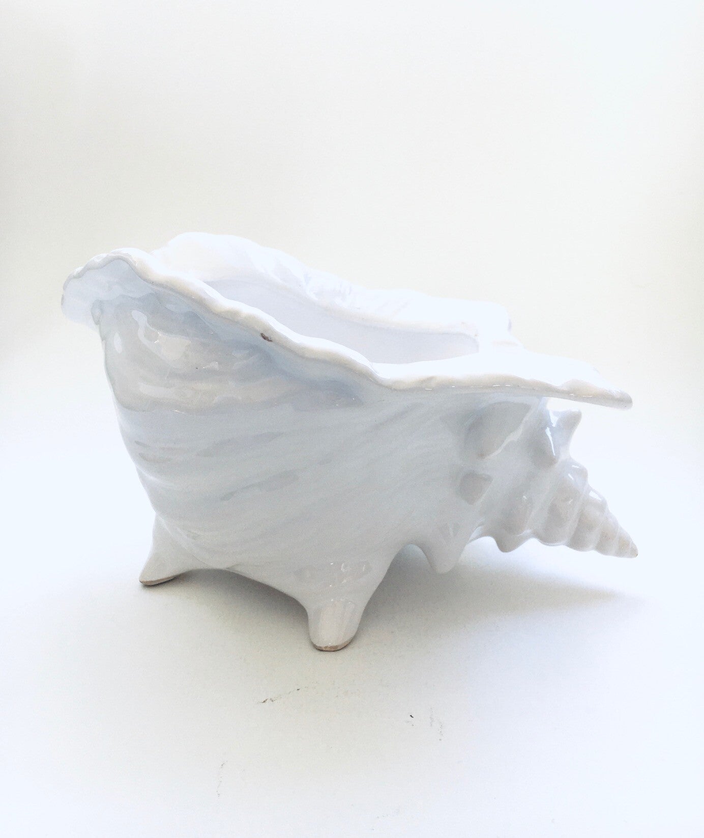 Postmodern Art Ceramics White Glazed Planter Kong Shell 1980's