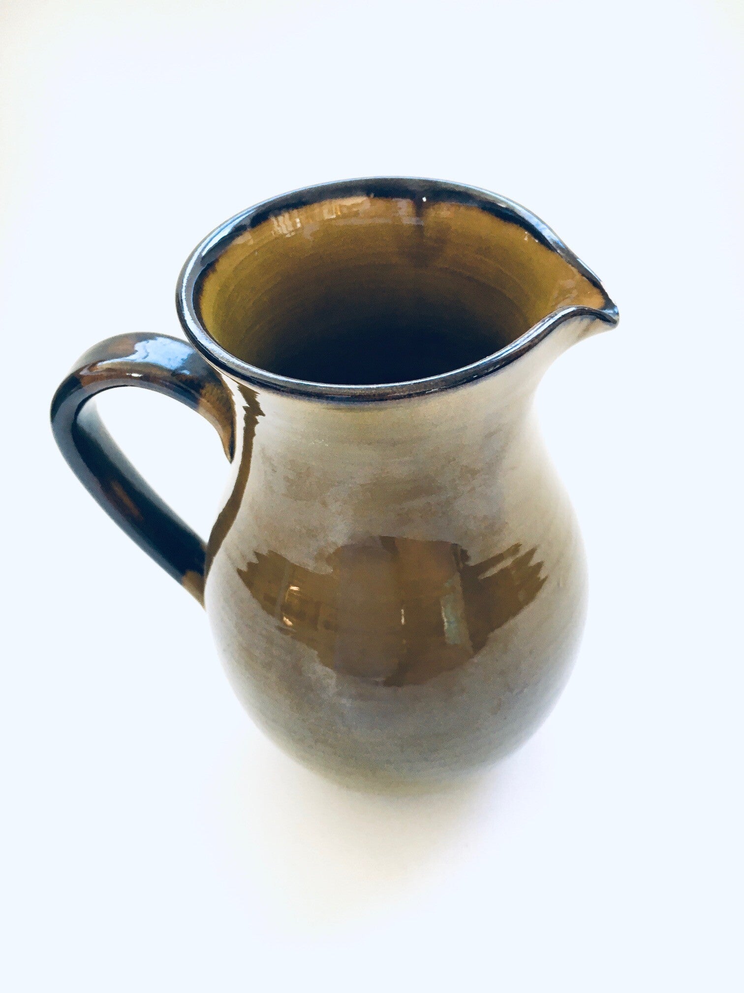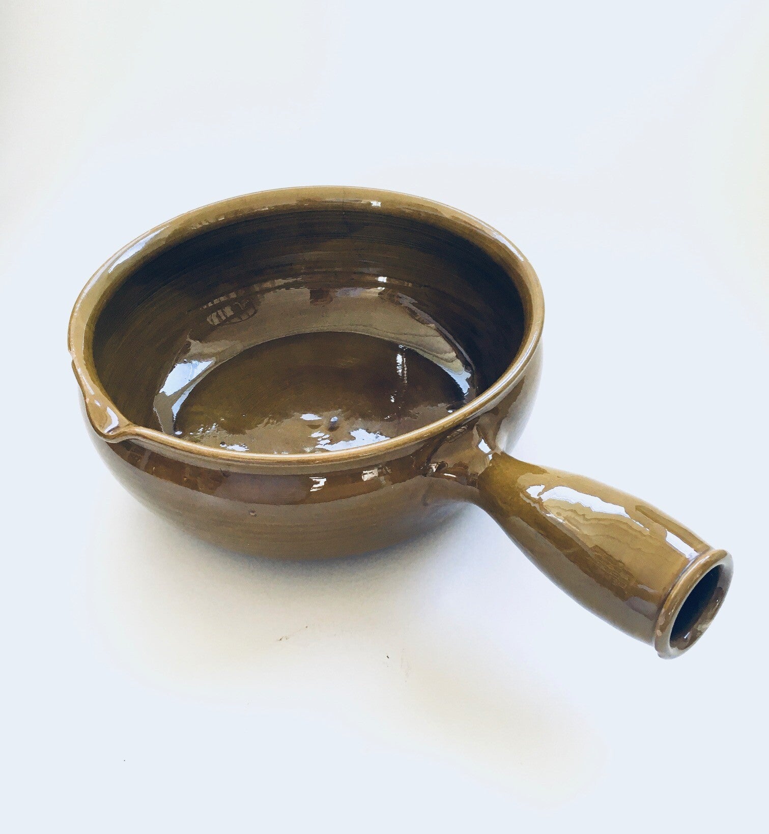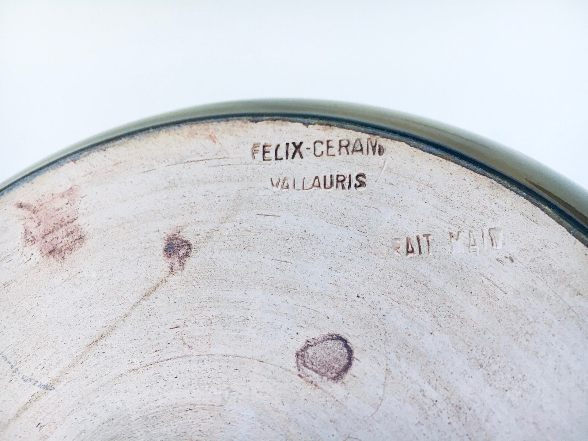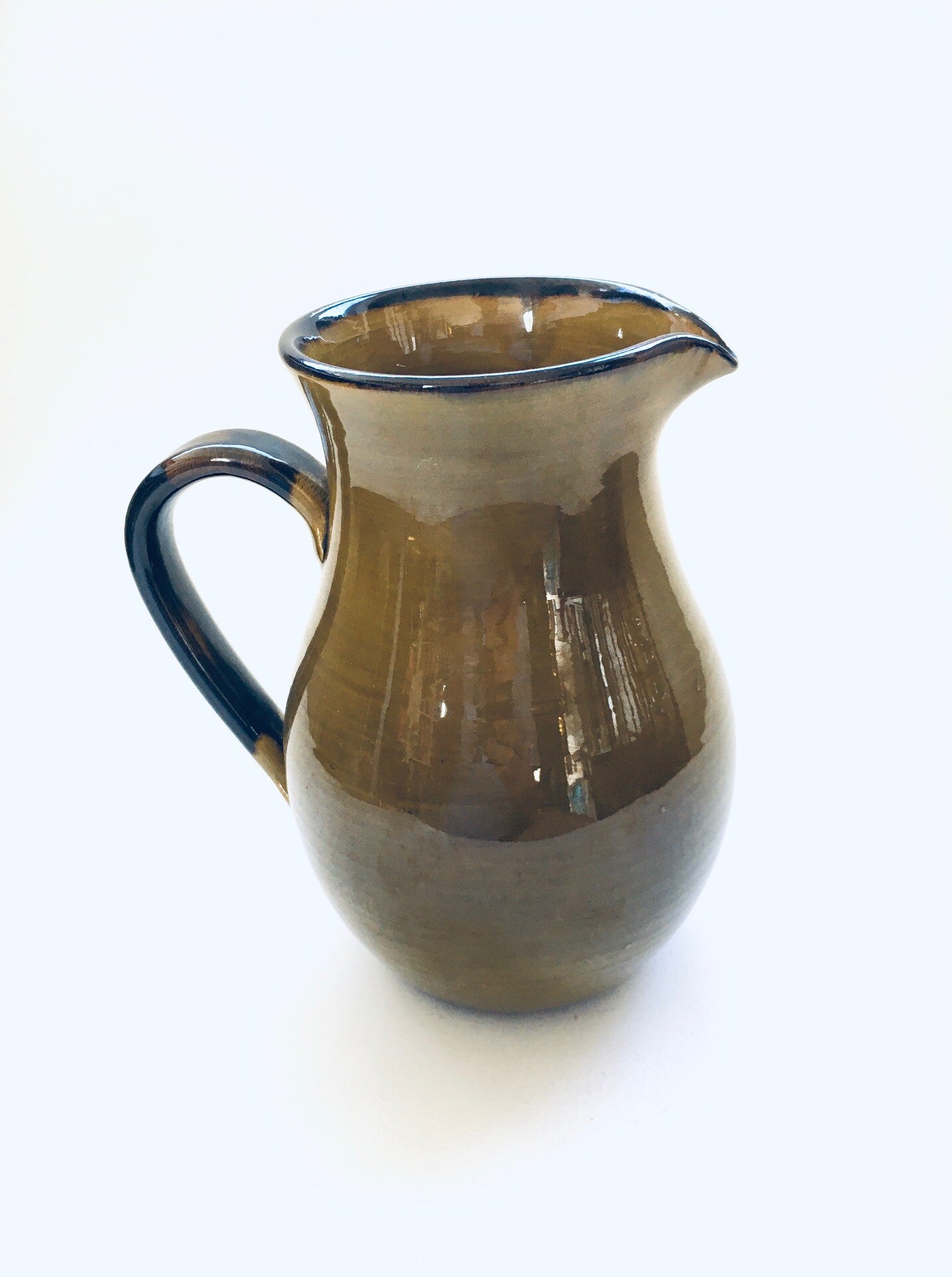 Vintage Art Pottery Bowl and Decanter by Felix-Ceram for Vallauris, France 1960's. Handmade art pottery. Olive color glazed. Both are in good overall condition, with some minor chips. See pictures. Bowl measures 37cm x 26cm x 10,5cm. Decanter measures 19,5cm x 17cm x 13cm.