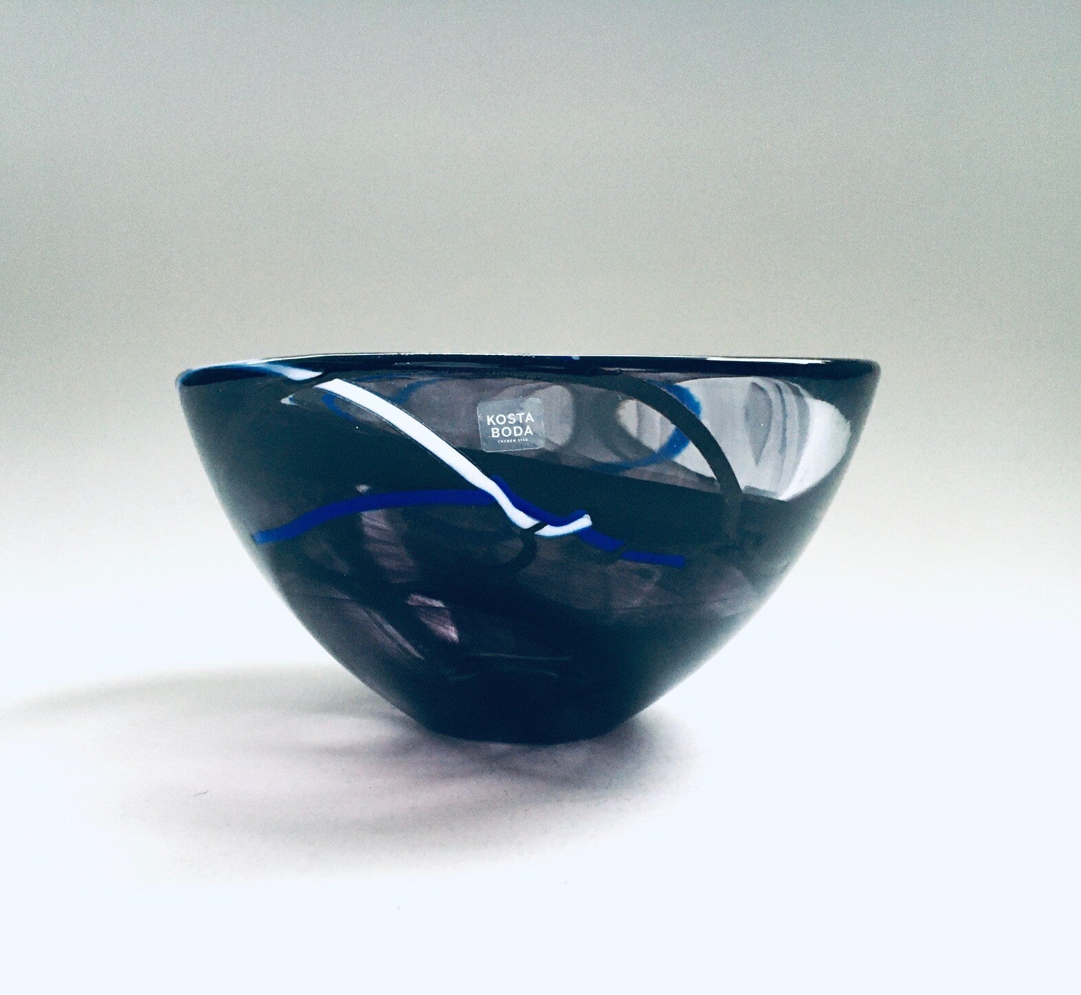 Modern Art Glass Contrast Glass Bowl by Anna Ehrner for Kosta Boda, Sweden