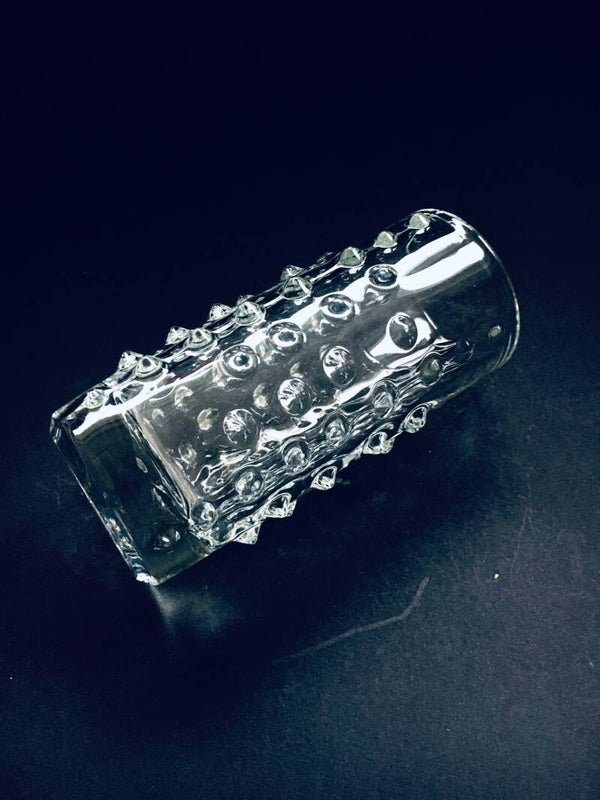 Vintage Midcentury Modern Bohemian Czech Design Spiked Glass Vase by Sklo Union, Rosice Glassworks, Czechoslovakia 1960's. Clear crystal pressed glass vase. In perfect condition. Measures 16,5cm x 8cm x 8cm.