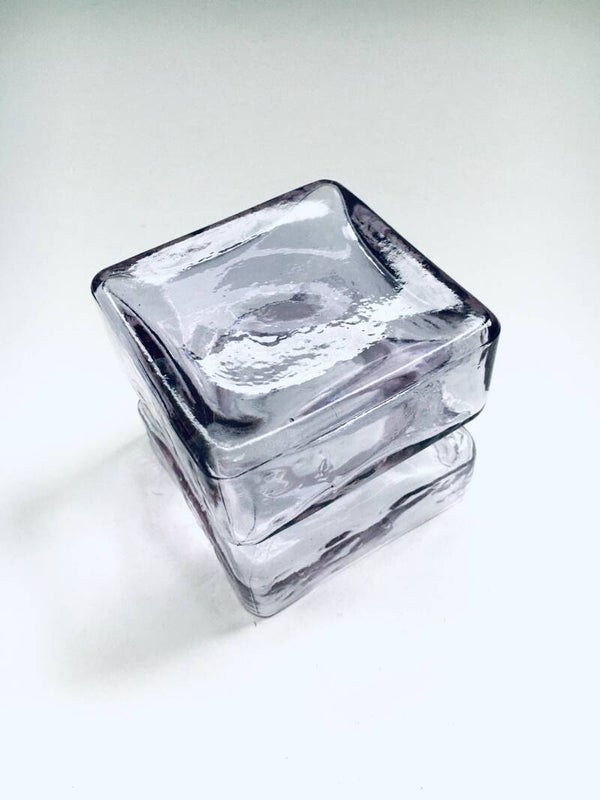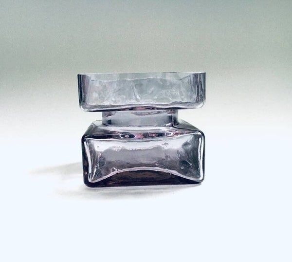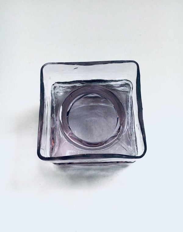 Vintage Midcentury Modern Scandinavian Design "Pala" Glass vase by Helena Tynell for Riihimaen Lasi, Finland 1960's. Pale purple pressed glass square vase. In very good condition. Measures 7cm x 8cm x 8cm.