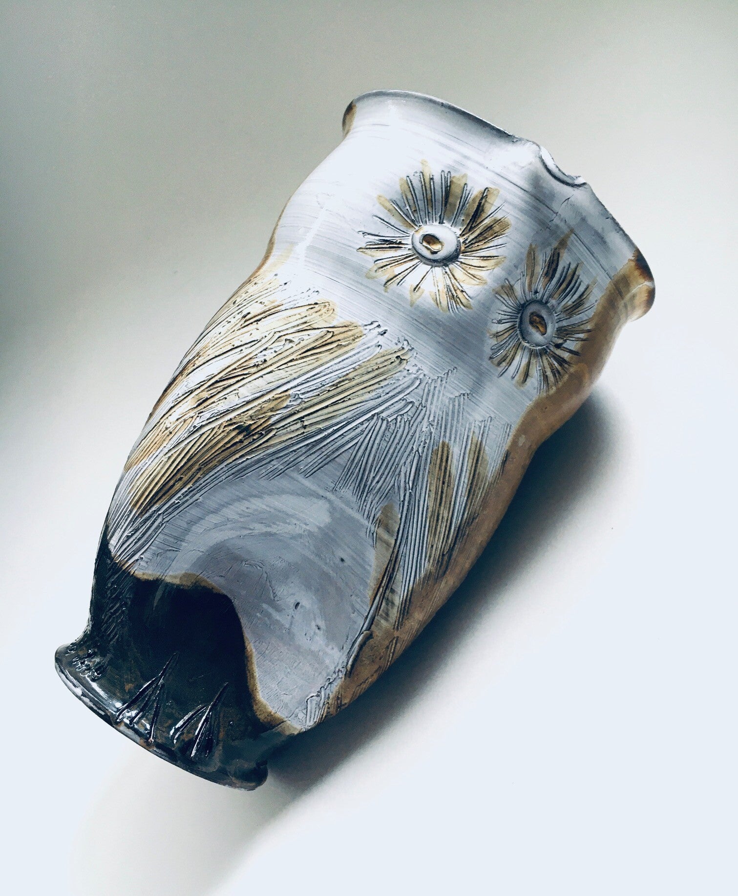 Vintage Studio Art Pottery "Owl" Decanter Jug by Tavares, 1970's Spain. Signed on the bottom. This comes in pristine condition. A very Rare Art Decanter Vase. Measures 25cm x 20cm x 15cm.