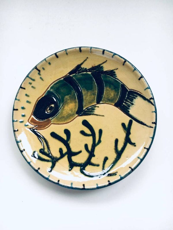 Vintage Studio Art Pottery Fish Plates set, France 1960's