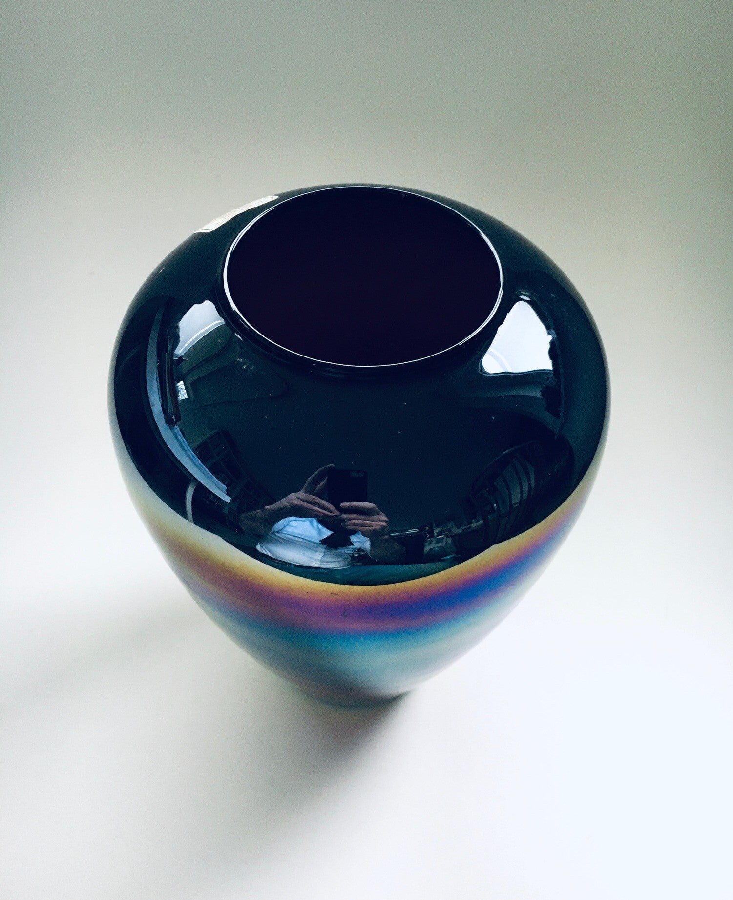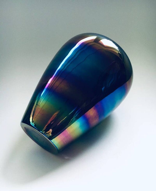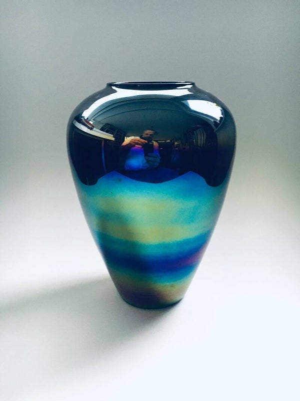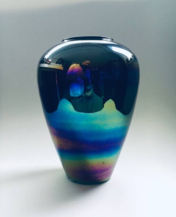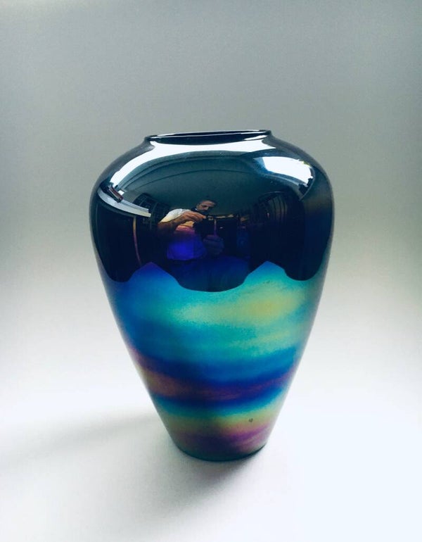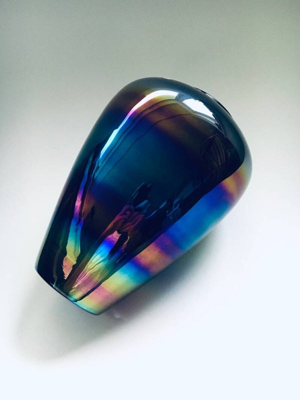 Vintage Midcentury Modern Art Glass Hand Made Rainbow Colored Case, Italy 1960's. Venetian Master glass makers label. In perfect condition. Measures 24cm x 18cm x 18cm.