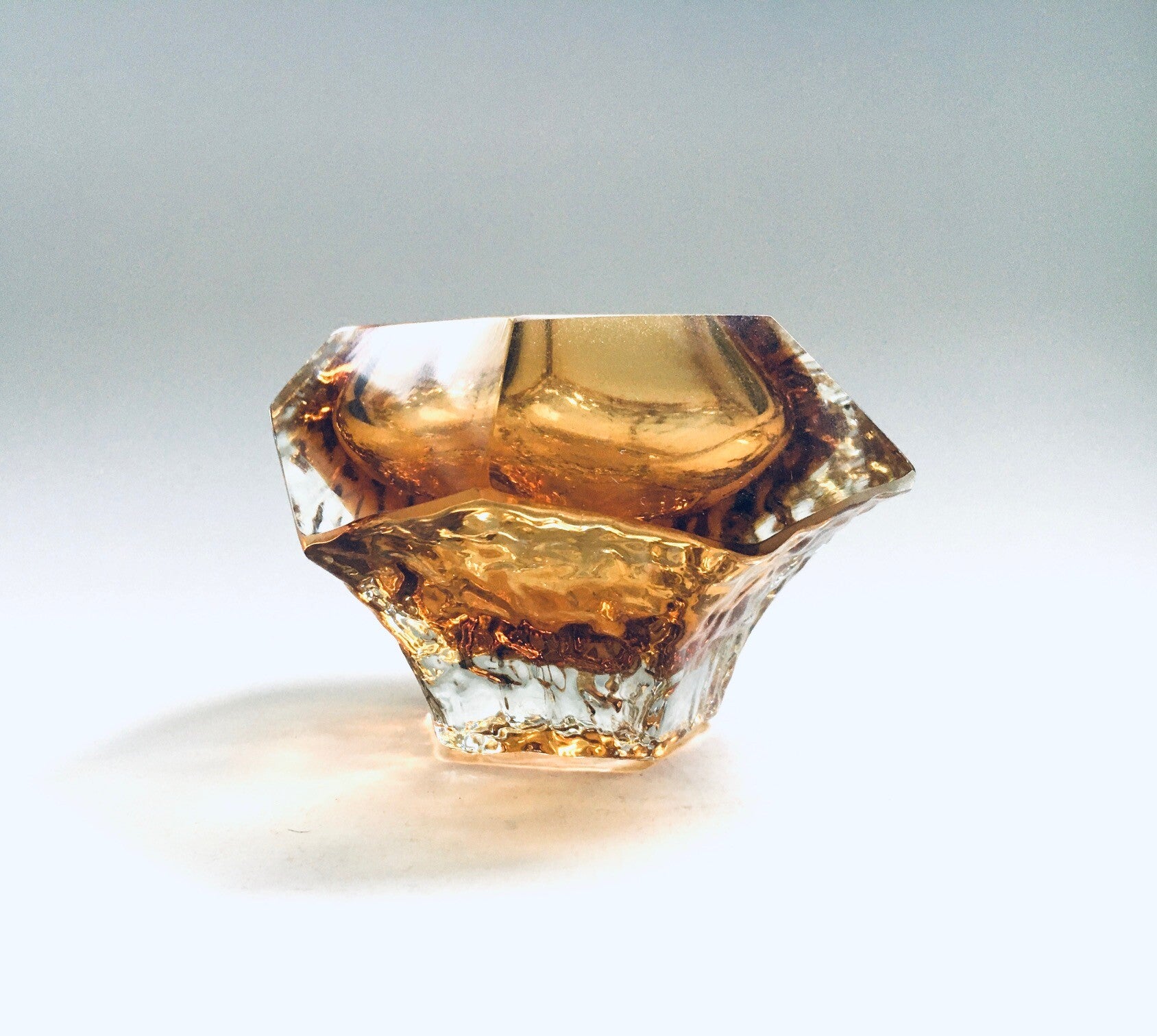 Mandruzzato Sommerso Iceberg beveled Art Glass Bowl Italy 1960's