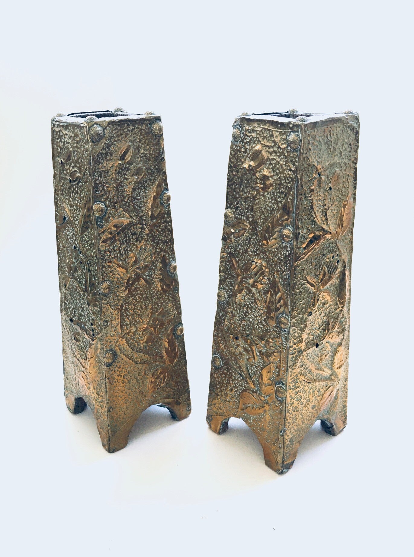 Arts & Crafts Style pair of Brass Flower Vases 1930's