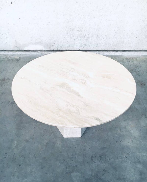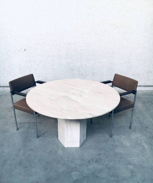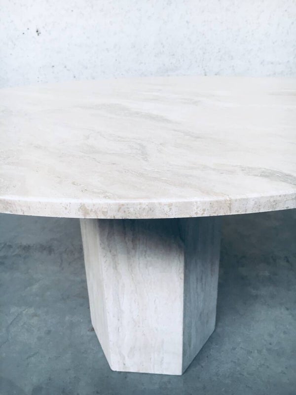 Postmodern Design Round Travertine Marble Dining Table, Italy 1970's