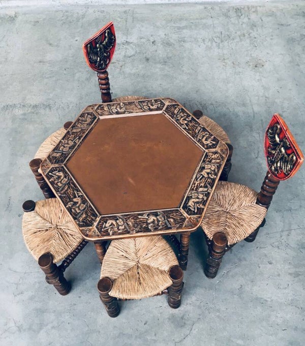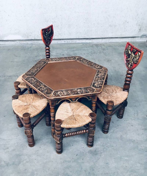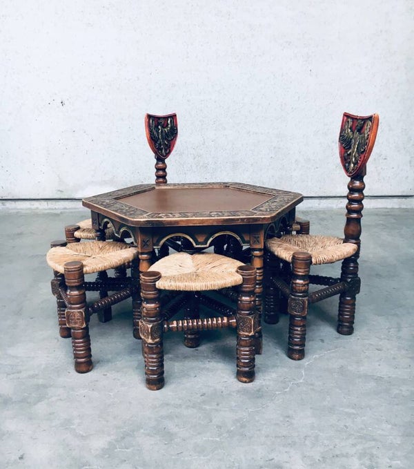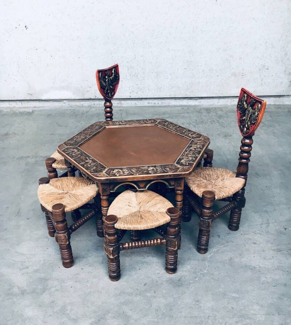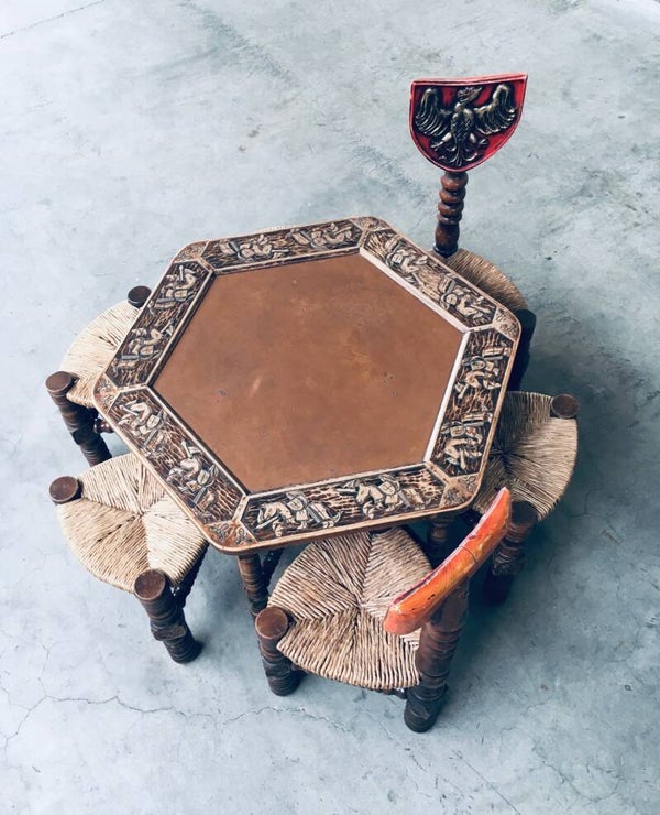1960's Brutalist Hand Craft Made Medieval Knights Low Stool Chair Set