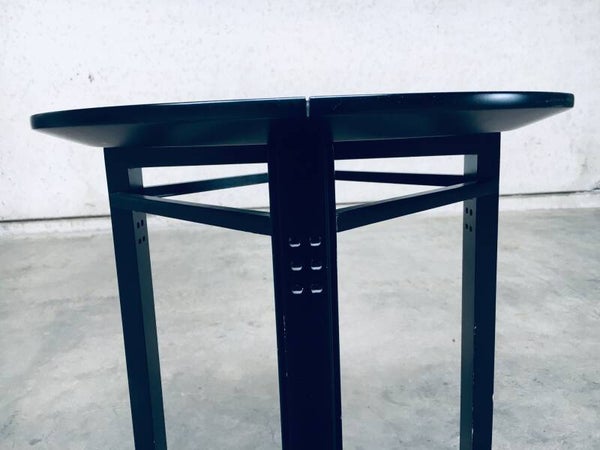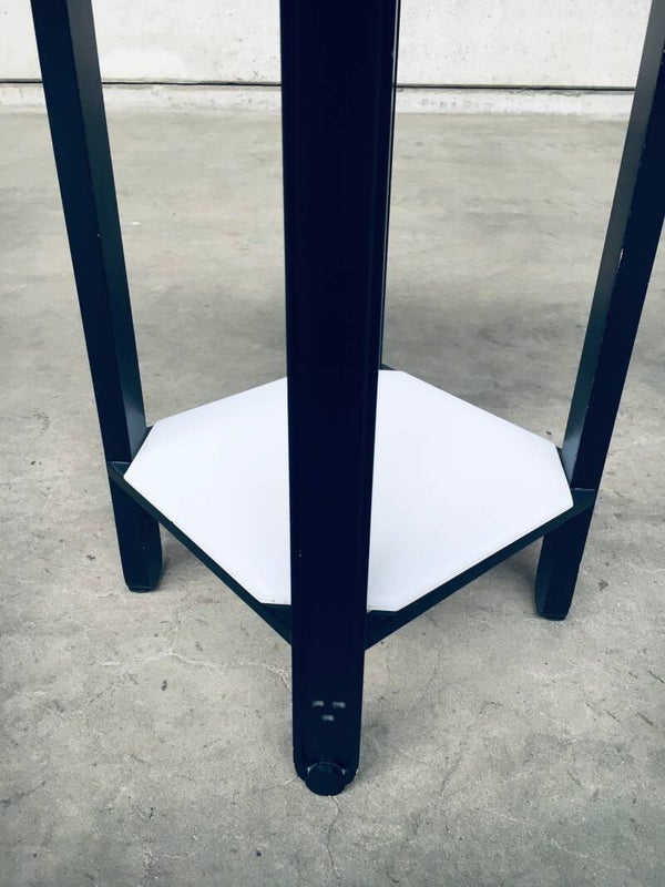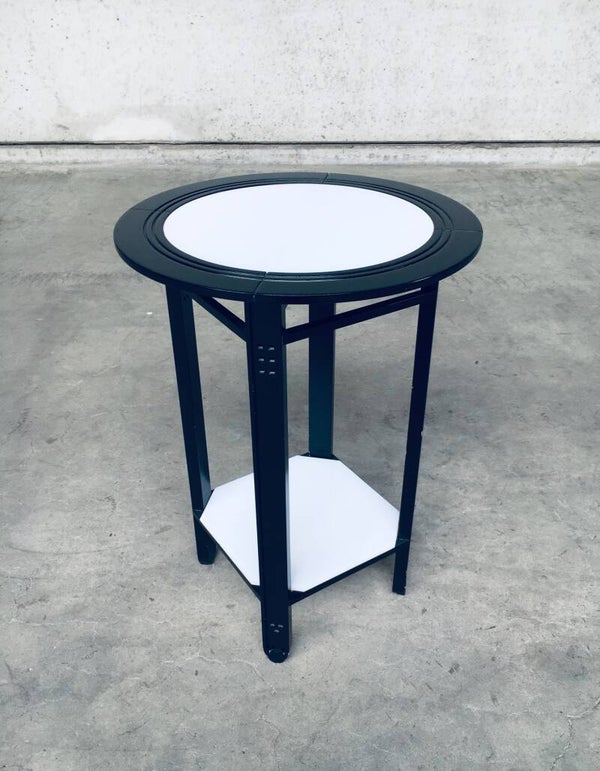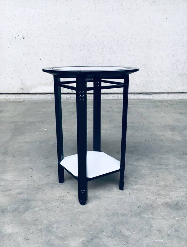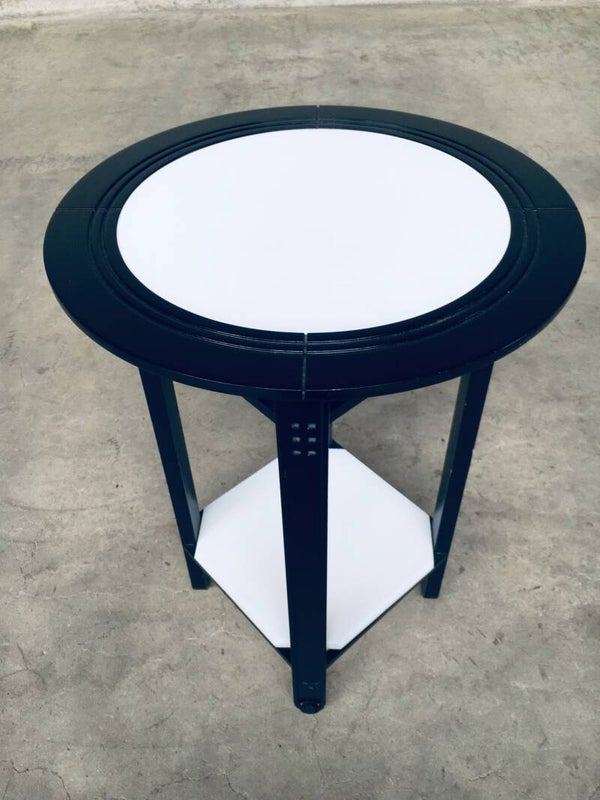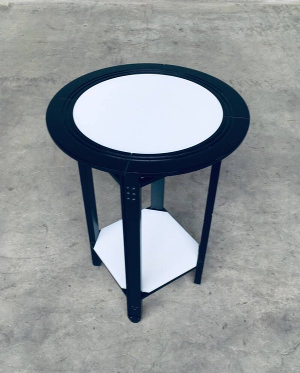 Postmodern Italian Design 'Galaxy' series round Side Table by Umberto Asnago for Giorgetti, Italy 1980's. Black laquered wooden frame with white glass inlay top and bottom. Comes in very good condition. Measures 63,5cm x 45cm x 45cm.