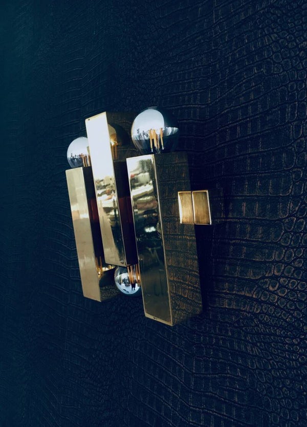 Vintage Italian Design 3 square wall sconce lamp applique by Sciolari for Boulanger, Belgium 1970's. Solid brass square structure that fit's 3 half mirror light bulbs (not included). Cubist design, Hollywood Regency style. In very good condition. Measures 20cm x 20cm x 6cm.