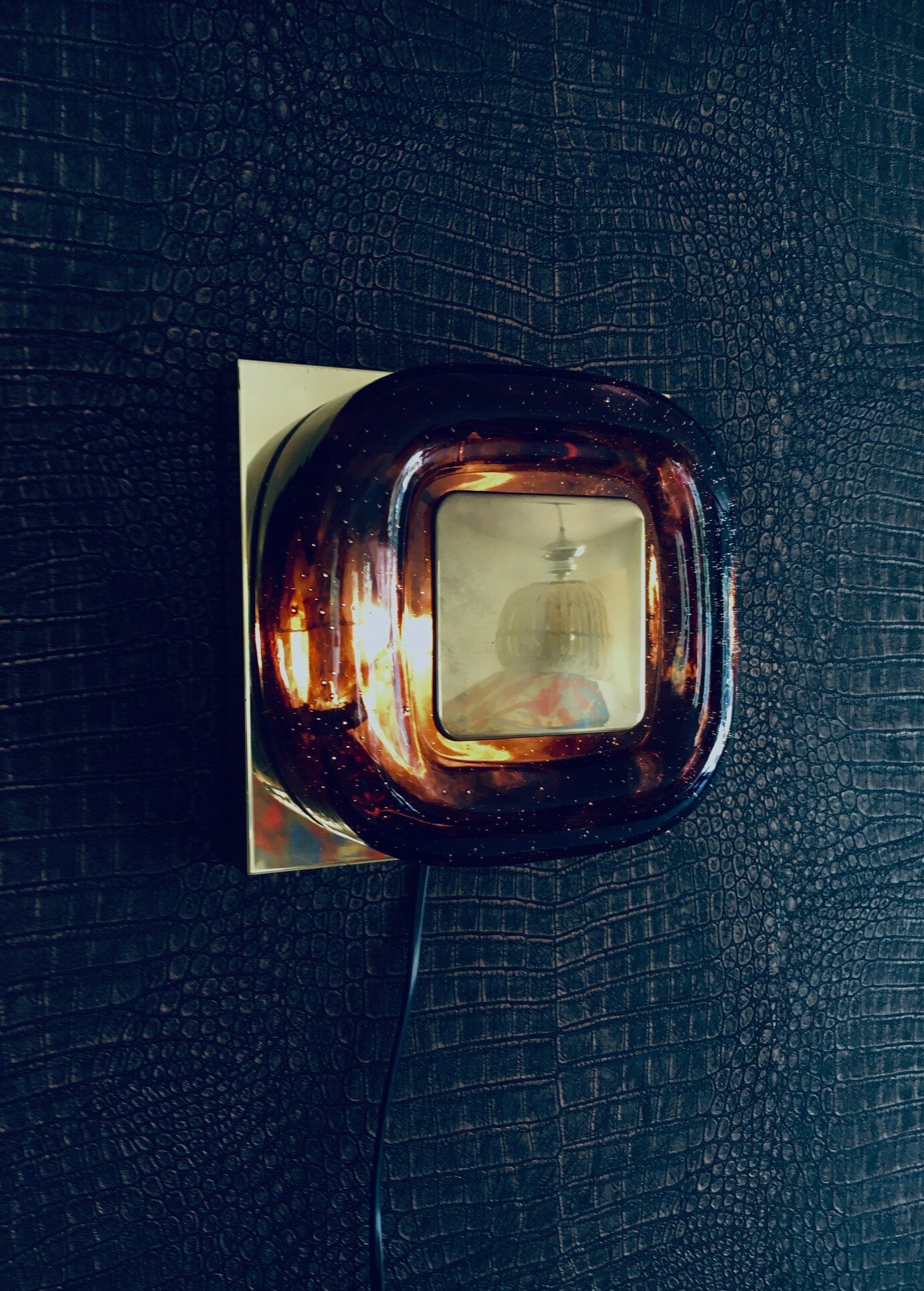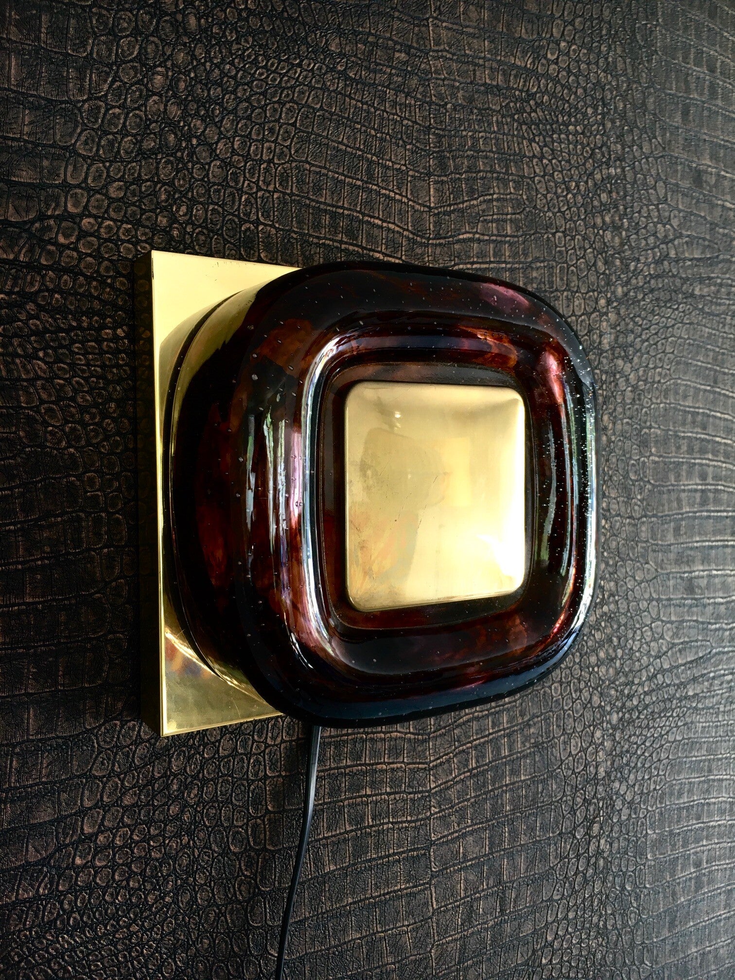 This 1970s square brass & glass wall lamp won an iF Design Award in 1977.