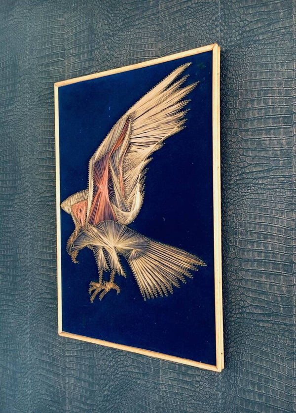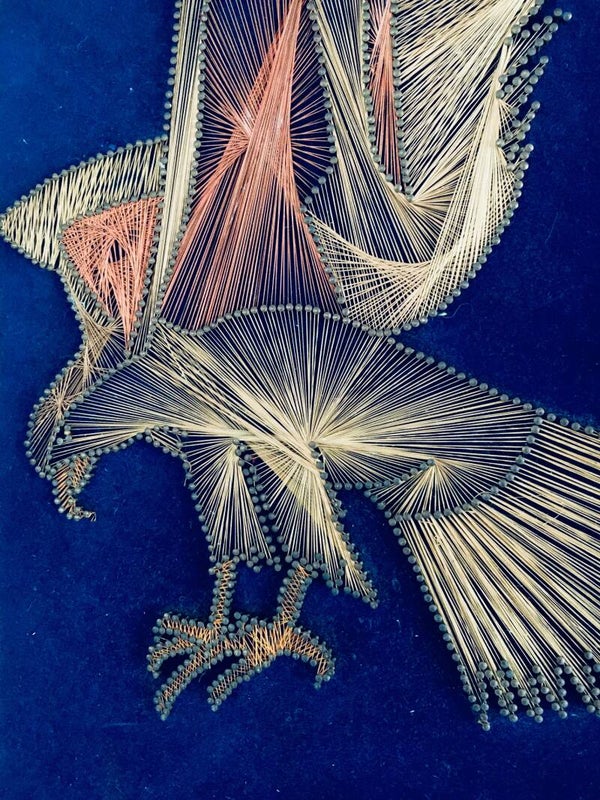 Vintage Handcrafted Needle Pin String Art work 'Eagle'. Made in the 1960's in Belgium. In overal good codntion, some strings are loose, see pictures. Measures 62cm x 41cm x 3cm.