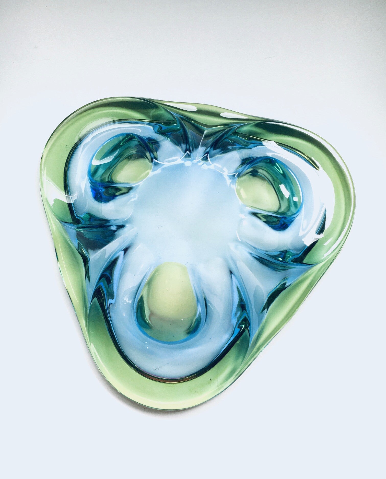 Midcentury Bohemia Czech Design Art Glass Dish, 1960's Czechoslovakia