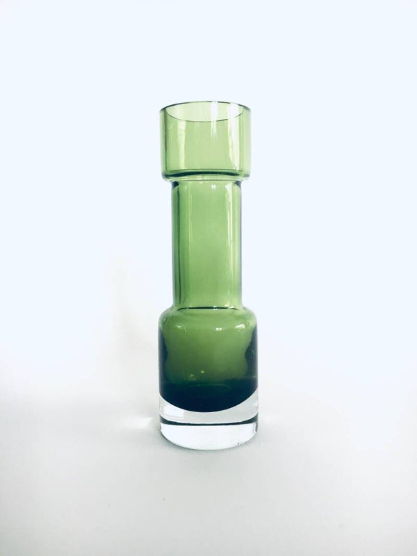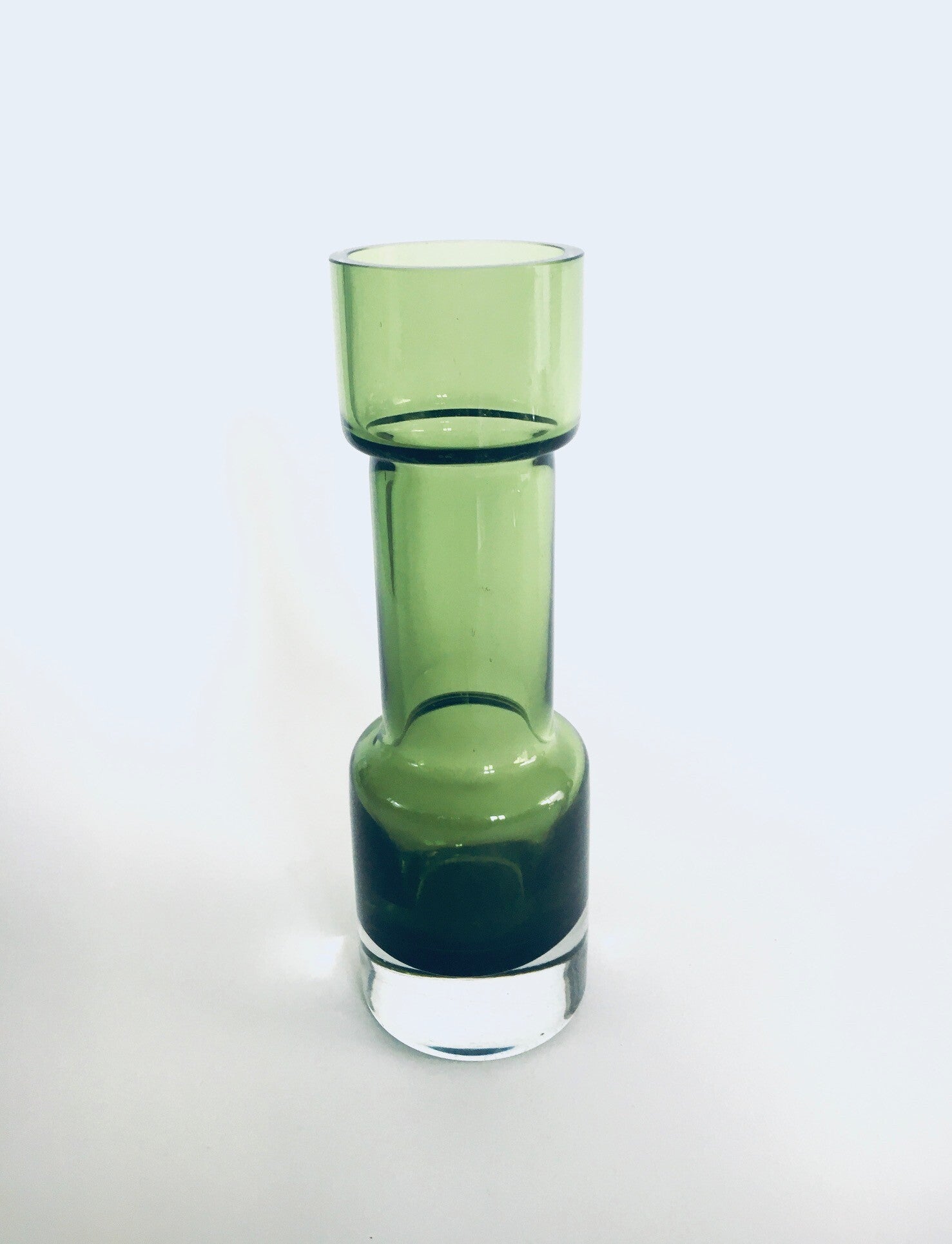 Vintage Midcentury Modern Scandinavian Design Green Glass Hooped vase, Finland 1970's. Handmade glass vase in clear and green glass. In very good condition. Measures 7,5cm x 7,5cm x 24,5cm.