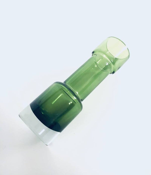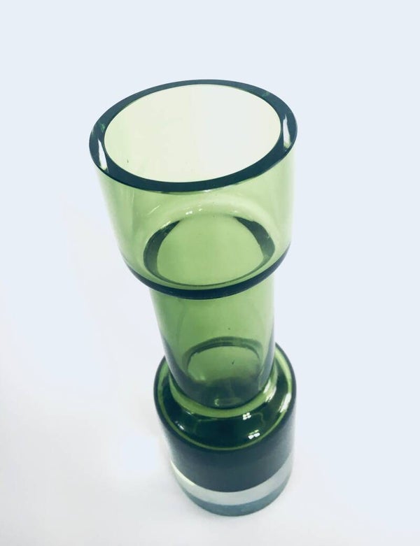 MCM Scandinavian Design Green Glass Hooped Vase, Finland 1970's