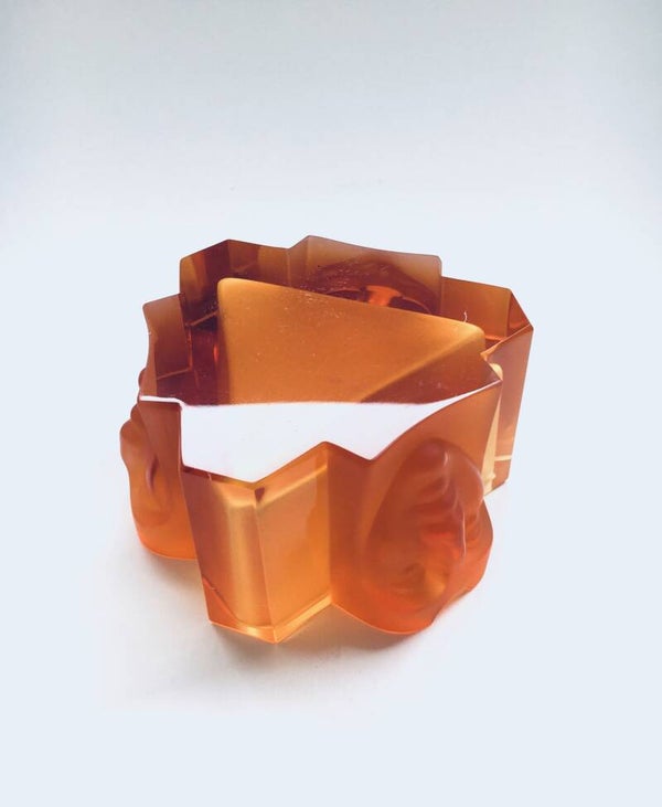 Tom Bohemia Crystal Art Glass Triangular Masque Ashtray, 1990's Czech Republic