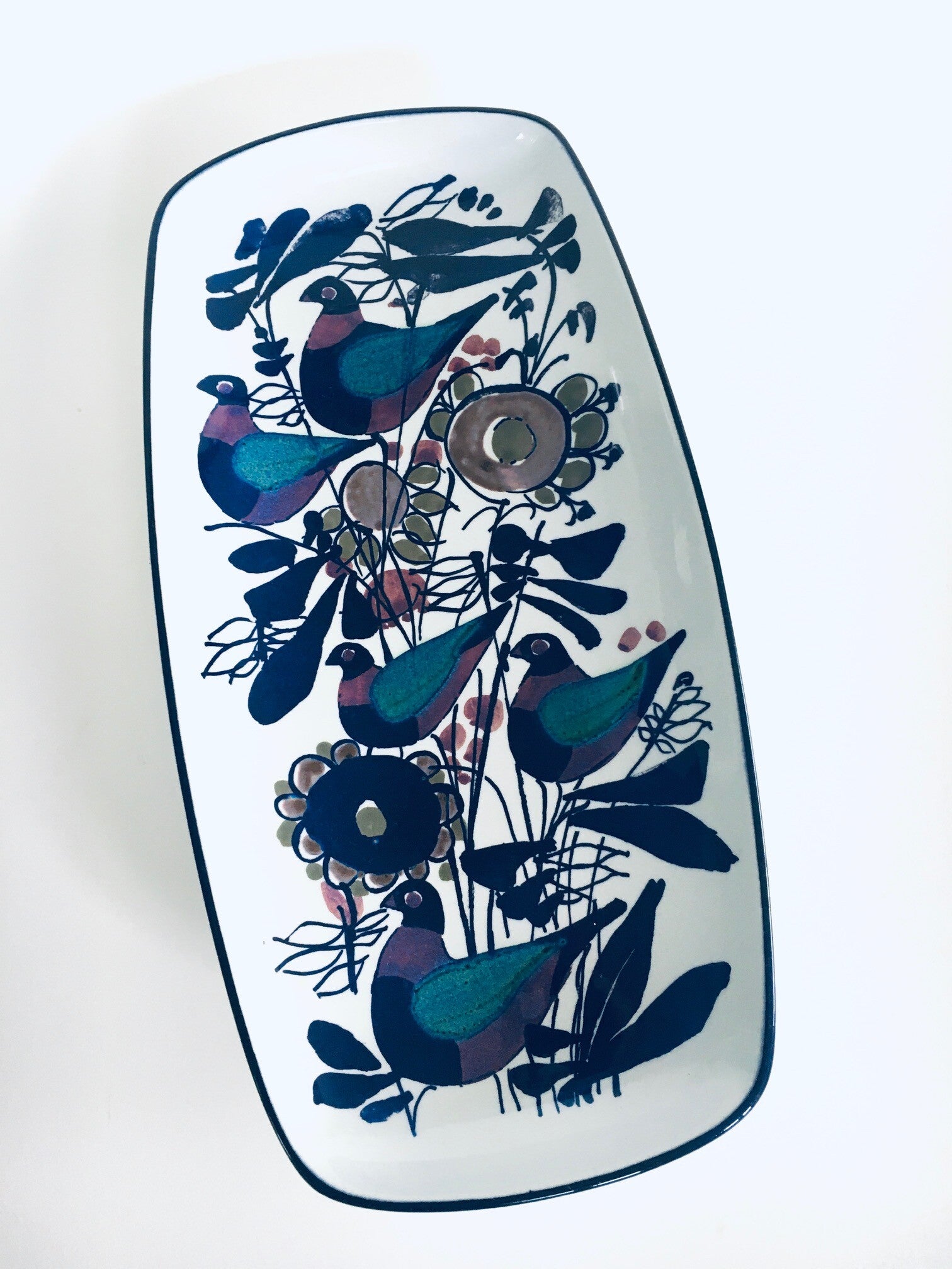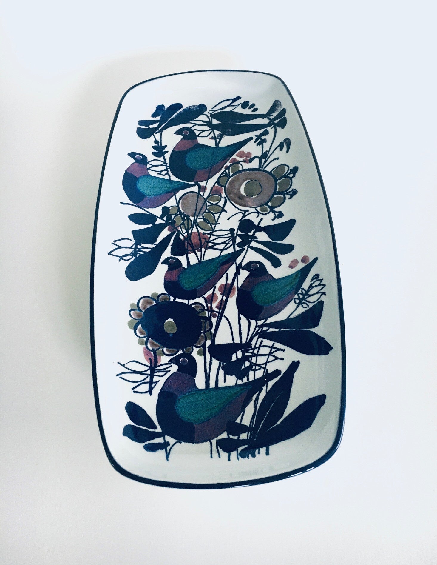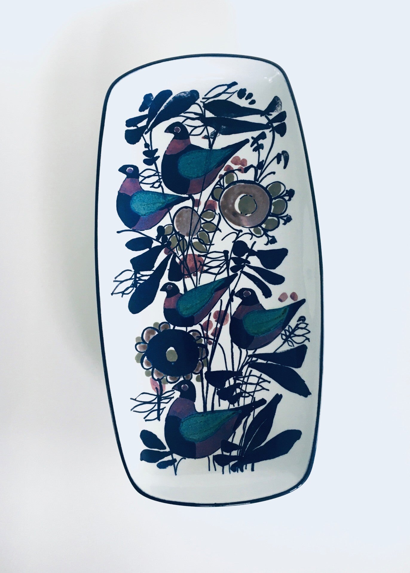 Vintage Midcentury Modern Scandinavian Design Ceramic Fajance Dish by Royal Copenhagen, Denmark 1970's. Blue Birds and flowers illustrated dish. Stamped and Marked on the bottom. In very good condition. Measures 16cm x 32cm x 4,5cm.