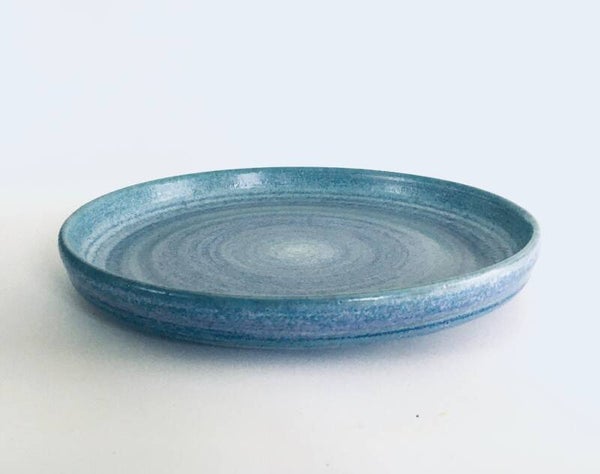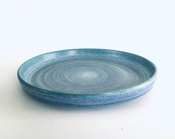 Postmodern Period Studio Art Pottery large plate dish by Mobach, Utrecht Netherlands 1990's. Impressive and heavy blue colored glazed dish. Stamped and signed on the bottom. In very good condition. Measures 37cm x 37cm x 4cm.