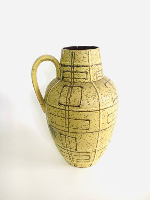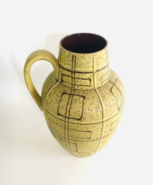 Vintage Midcentury Modern Design Studio Pottery Jug Vase by Karstens, West Germany 1960's. Stamped on bottom. Model 1515-39. Yellow base with brown and grey abstract illustrations. Impressive ceramic pot. In very good condition. Measures 27cm x 23cm x 39cm.