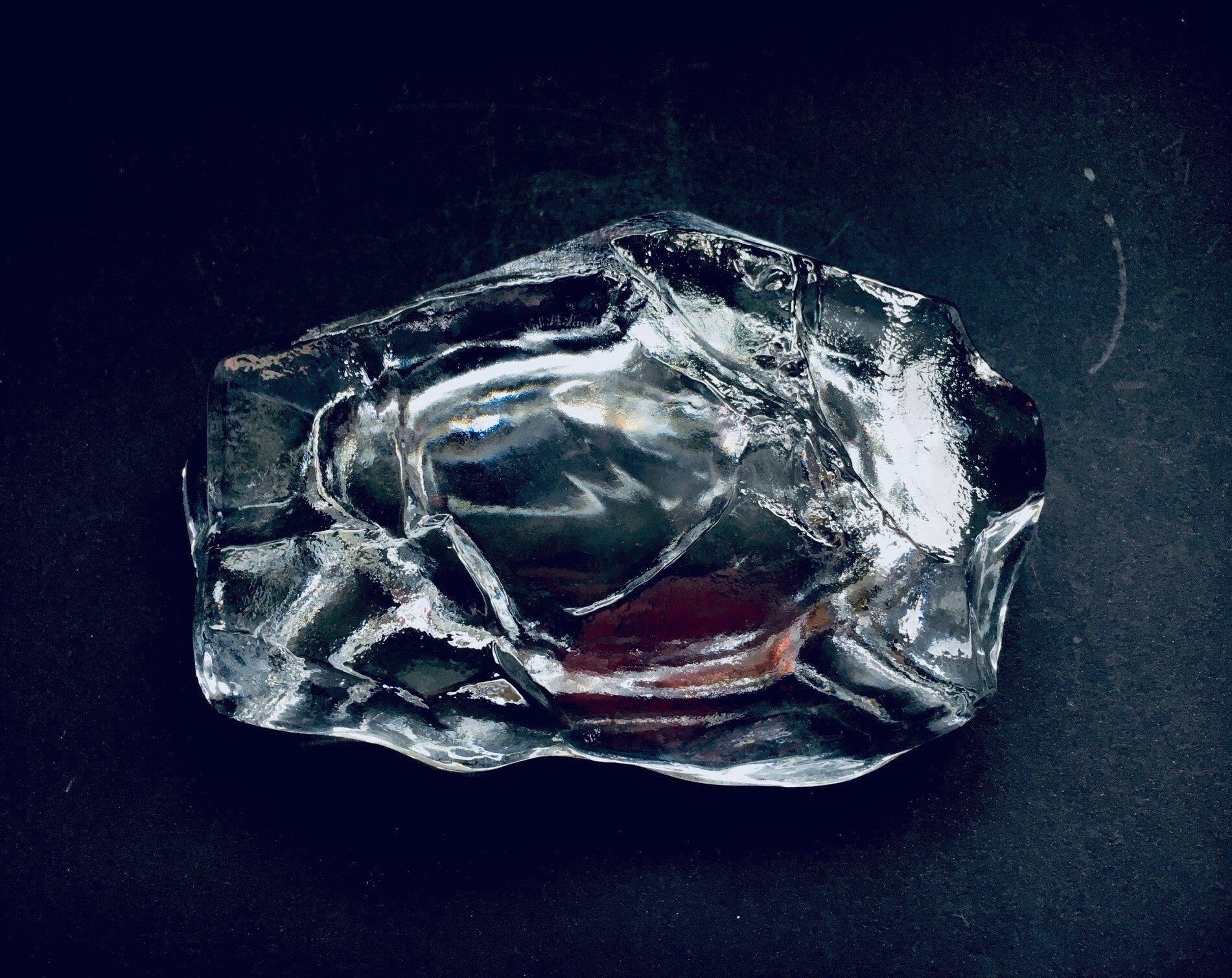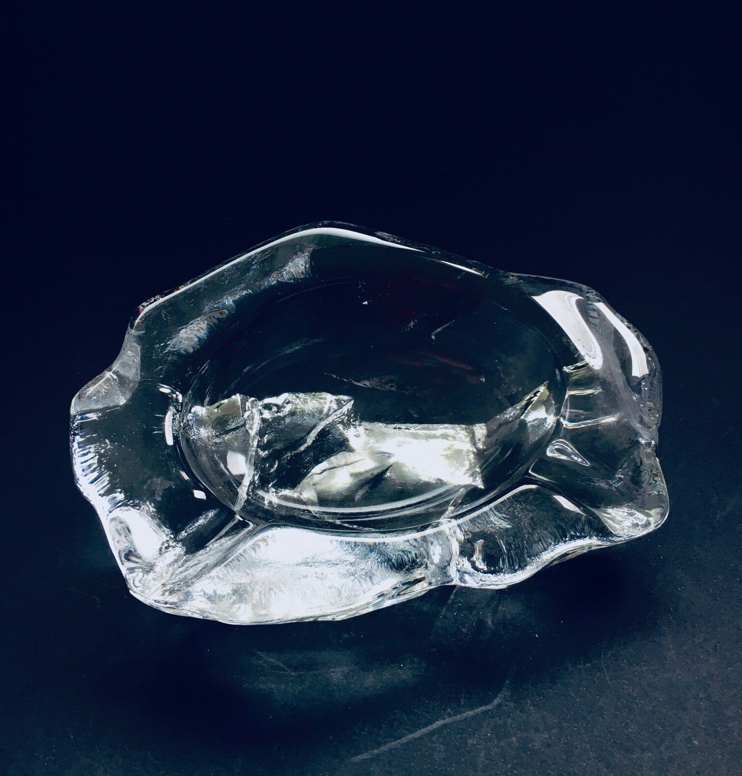 Vintage Large Crystal Glass Ice Berg Ashtray by Val St Lambert, Belgium 1960's. Marked on bottom. Structured mold pressed lead crystal glass. In very good condition. Measures 21,5cm x 15cm x 9cm.
