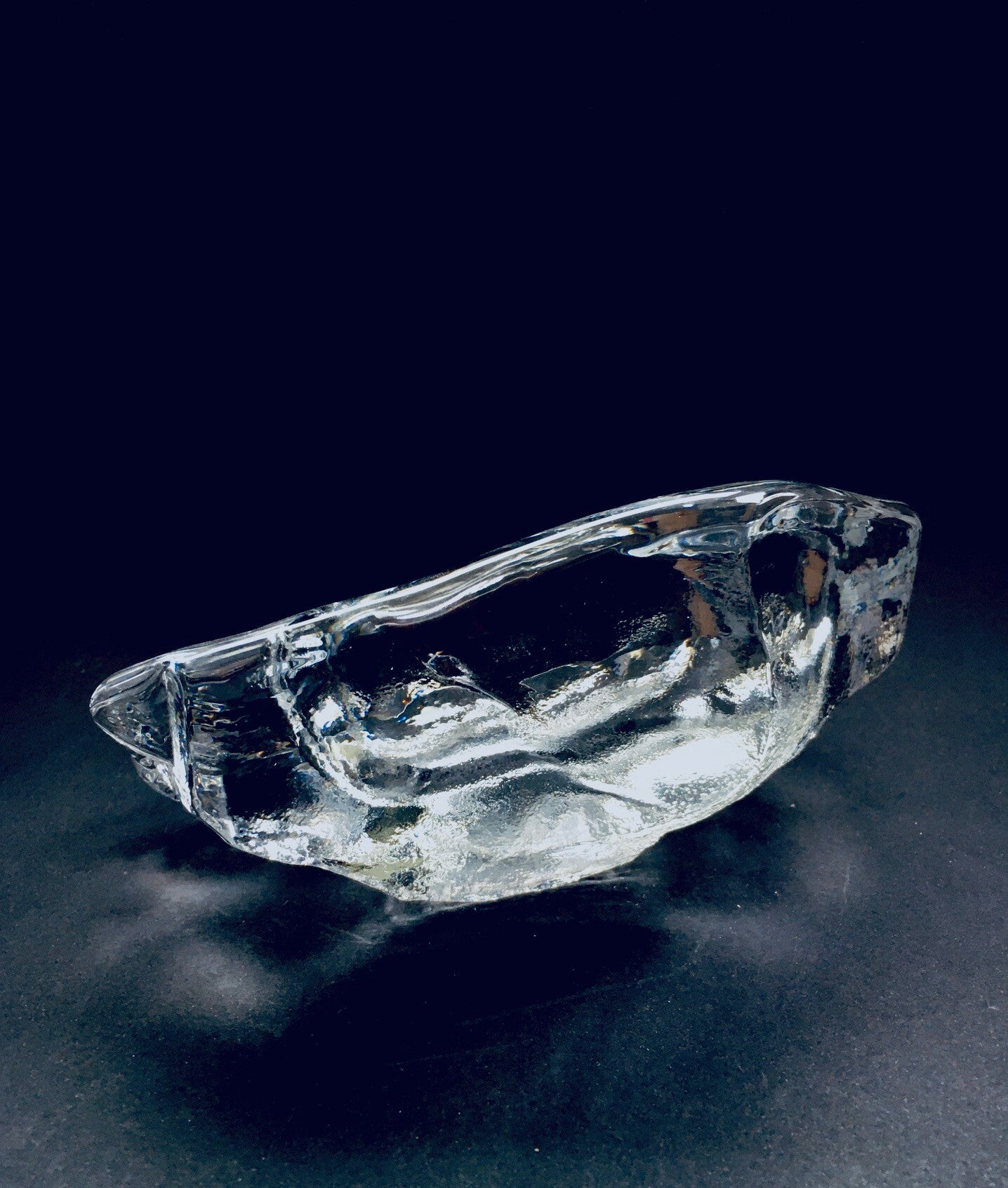 Large Crystal Glass Ice Berg Ashtray by Val Saint Lambert, Belgium 1960's