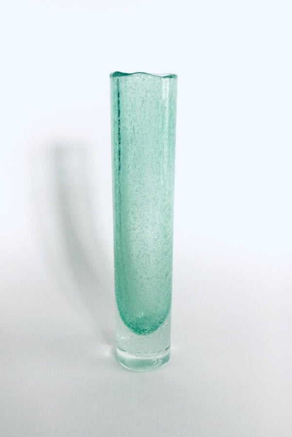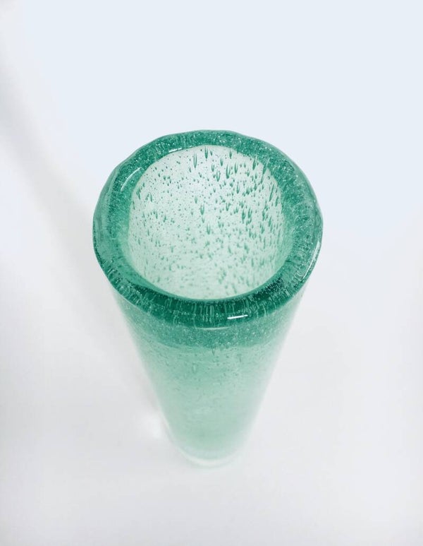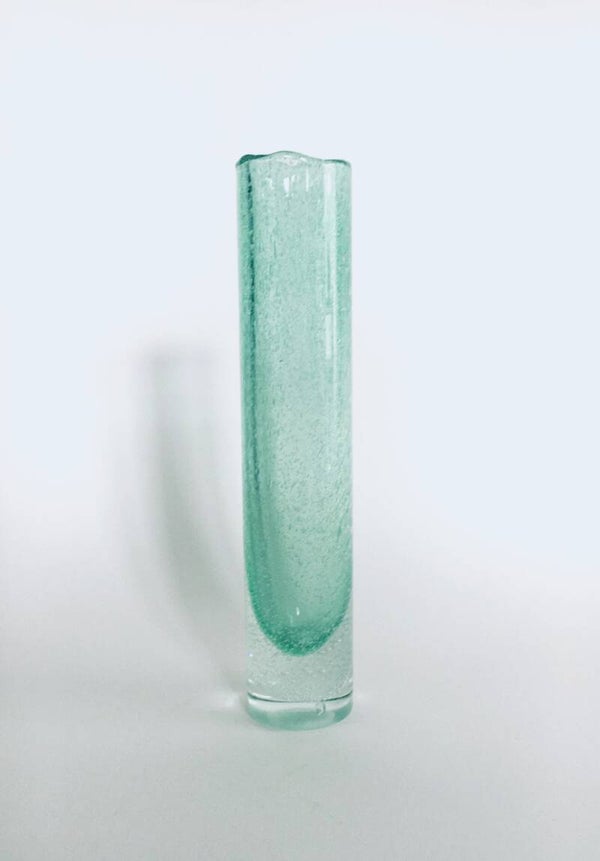 Vintage Handmade Art Bubble Glass pale green Tube Vase. No maker markings. Handblown molded vase in clear and pale green glass. In perfect condition. Measures 6cm x 6cm x 29,5cm.