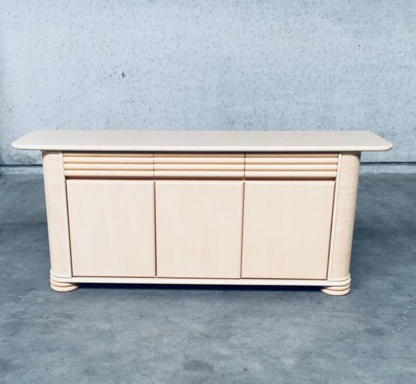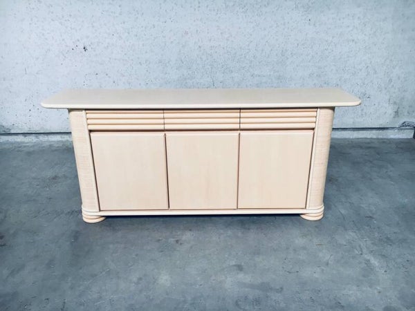 Postmodern Italian Design Lowboard Credenza Buffet Dressoir Signed by Roberti Rattan, Italy 1990's. Ash, bend wood and rattan constructed credenza. In very good condition. 3 drawers & 3 doors on lowboard buffet. Measures 193cm x 82,5cm x 47cm.