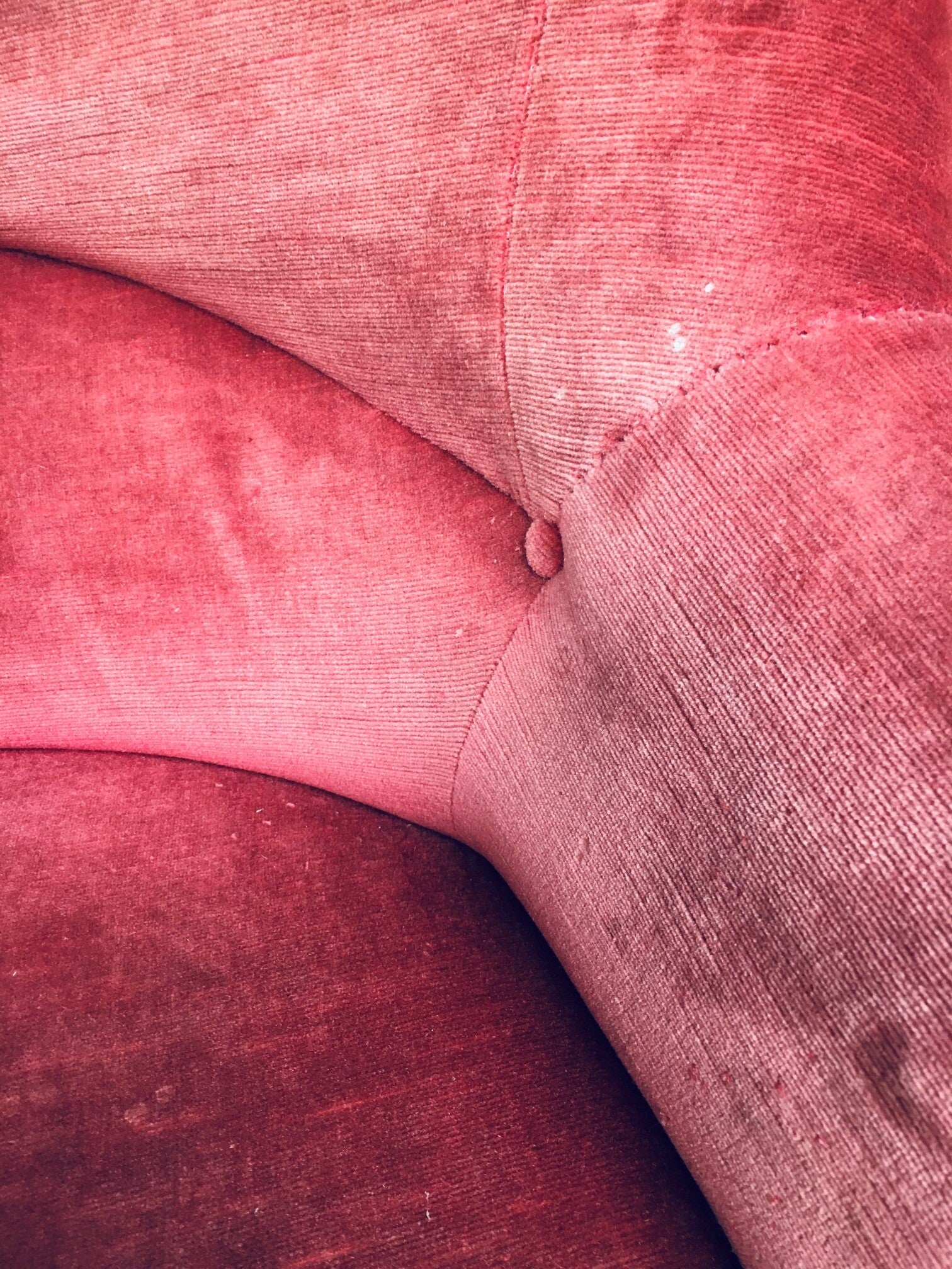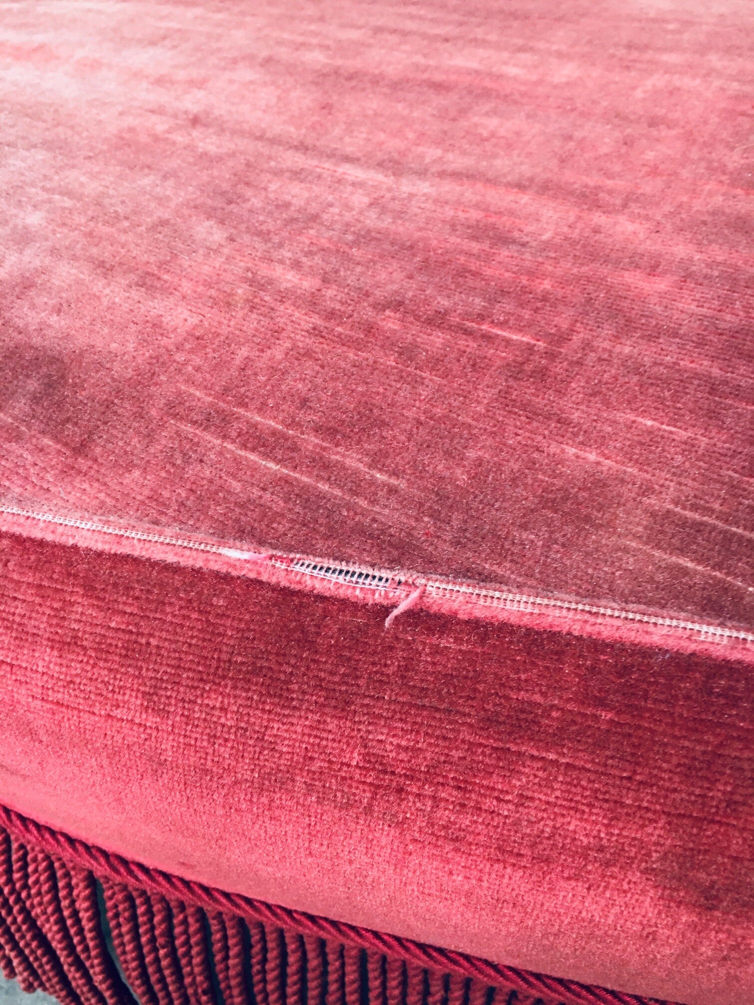 Hollywood Regency Style Red Pink Velvet 2 Seat Sofa with fringe 1950's