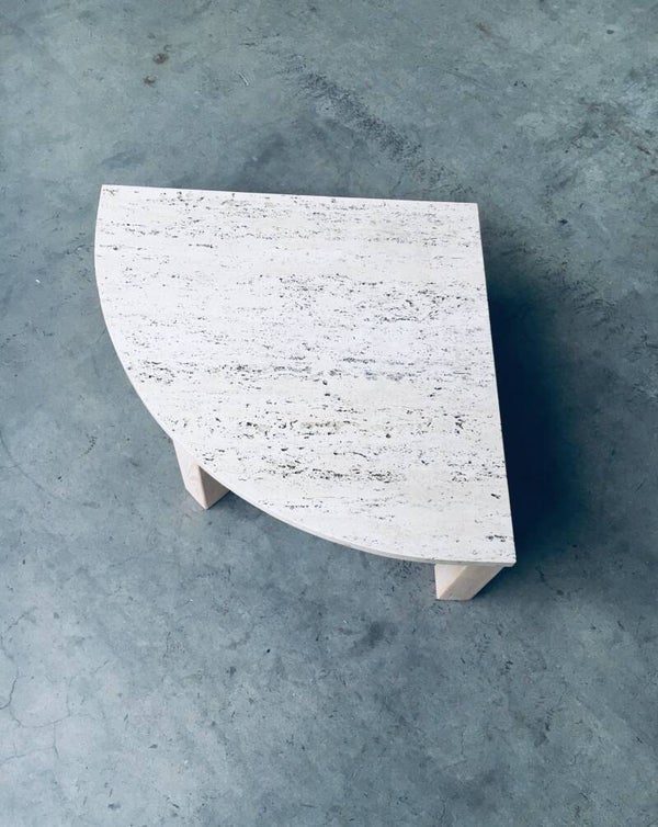 Midcentury Modern Design Sofa Edge Travertine Quarter Side Table, Italy 1970's