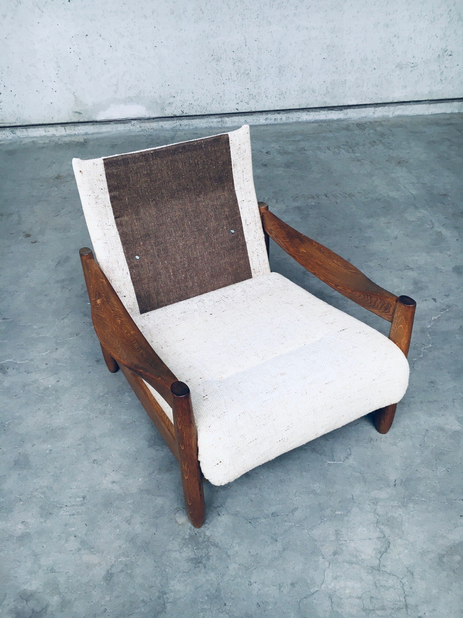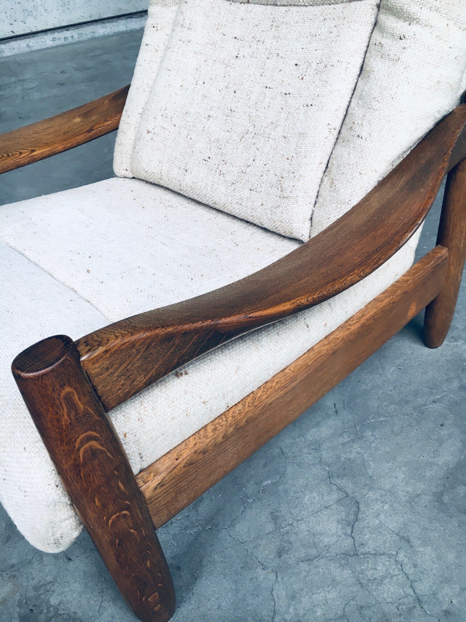 Vintage Midcentury Modern Scandinavian Design Oak Arm Chair Set of 2, Denmark 1970's. Oak frame construction with beige speckeled fabric cover. Both are in very good condition with normal signs of use for their age. Each chair measures 84cm x 89cm x 85cm.