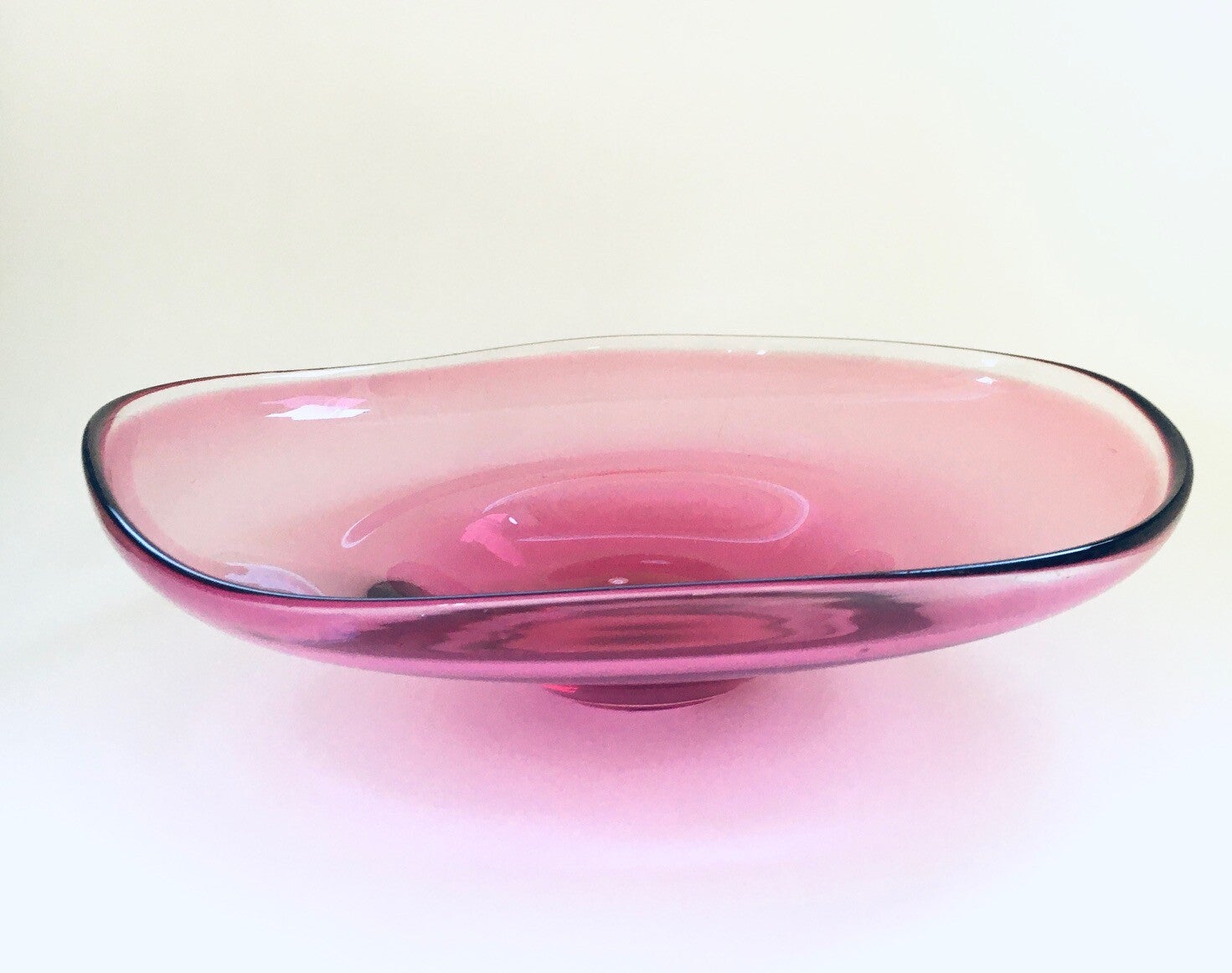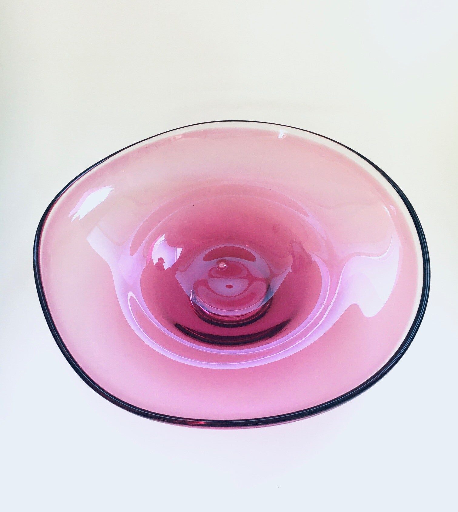 Vintage Midcentury Modern Scandinavian Design Freeform Art Glass XL Bowl by Frygsfors, Sweden 1960's. Clear and pink glass bowl. In very good condition, measures 40cm x 39cm x 12cm. Has a bubble in the glass, middle of the base.