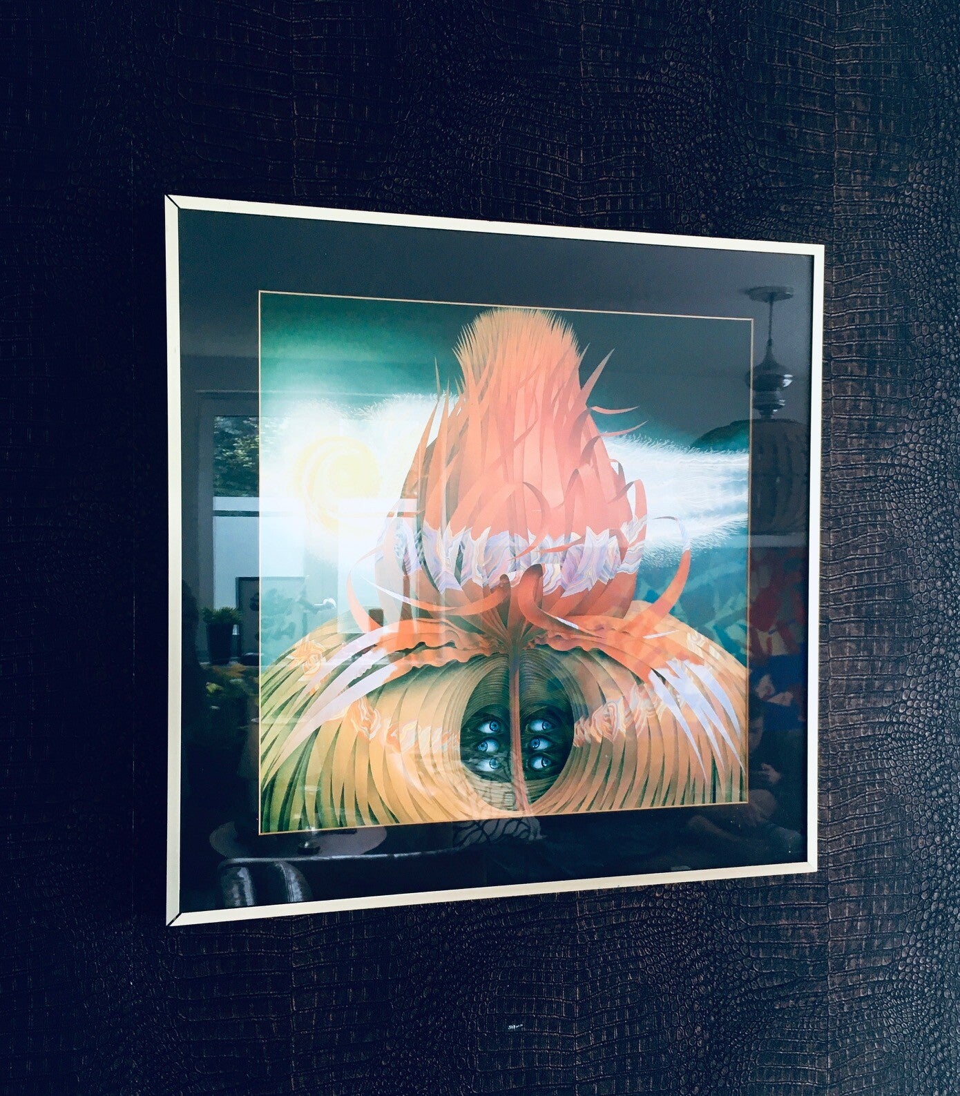 Original 1970's Surrealist Fantasy Art 'Flower in Life' Art Offset Print. Well framed under glass, frames has some minor scuffs and 2 corners are slightly split. Print in very good condition. Print measures 46cm x 46cm - frames measures 61cm x 61cm x 3cm.