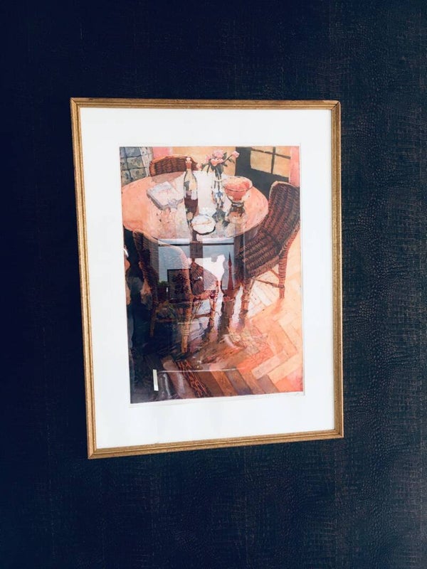 Original Art Lithograph Print "Kitchen Scene", signed by Artist Marcel Seve La Liens 1991, numbered 30/50. Framed under glass in wooden frame. Print is in very good condition. Frame has some parts scraped on the 2 top corners. This large work measures 48cm x 68cm - frames measures 71,5cm x 94,5cm.