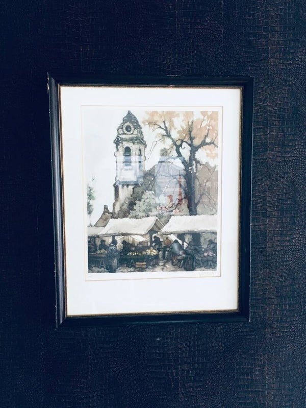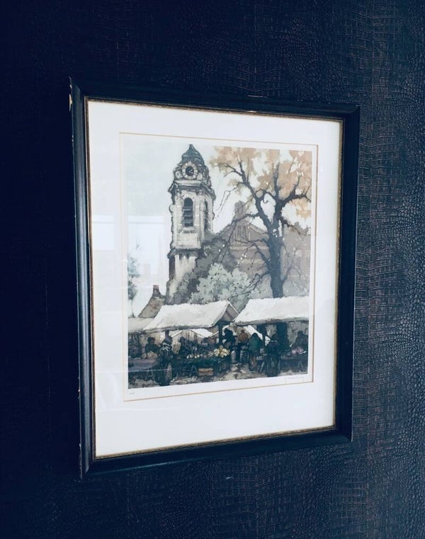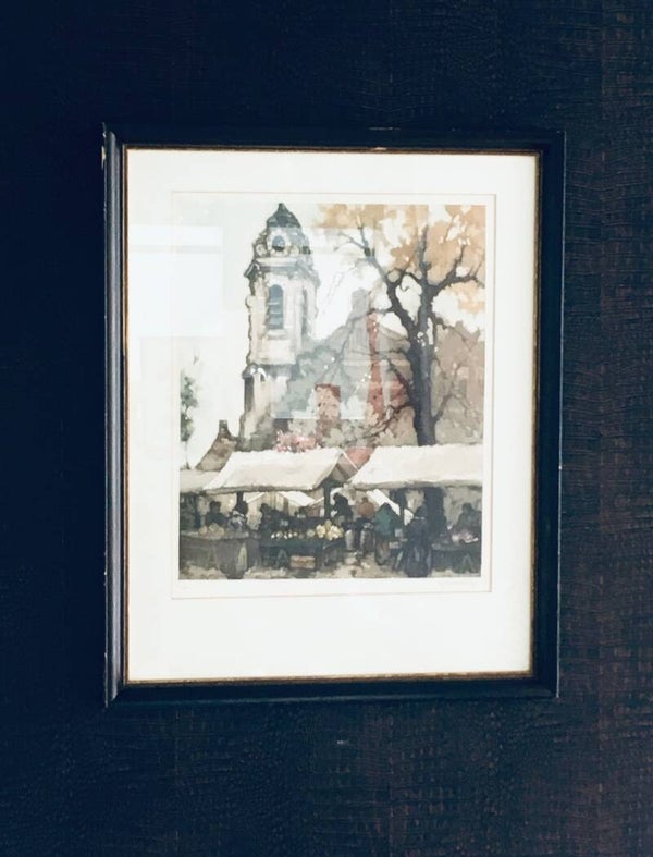 "Early Morning Market" Art Lithograph Etching by Roger Hebbelinck