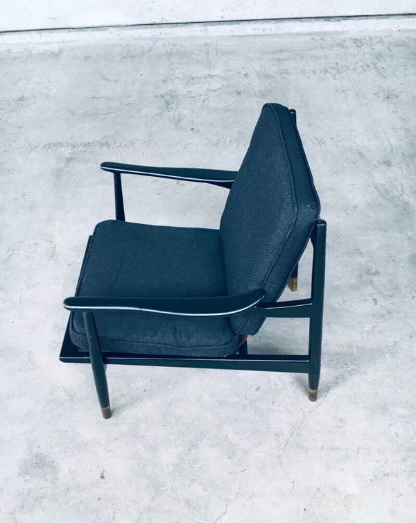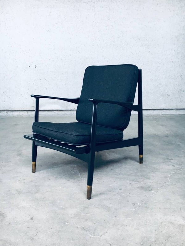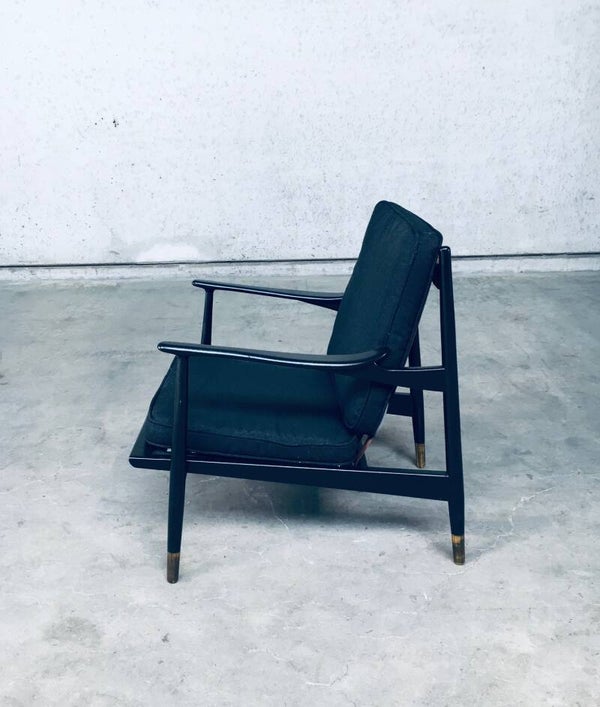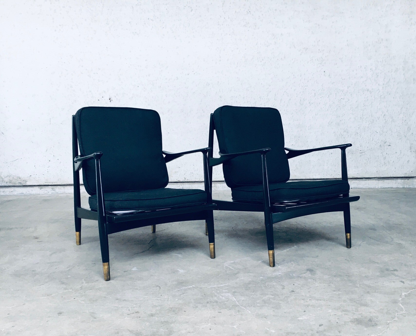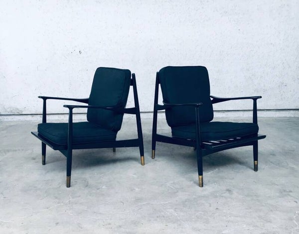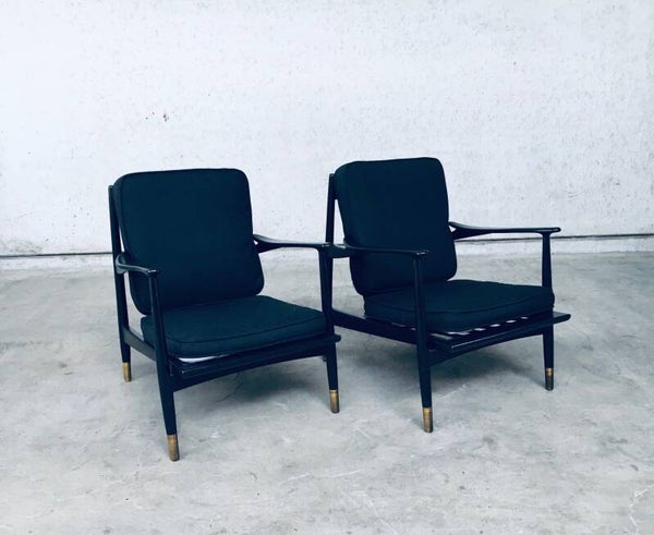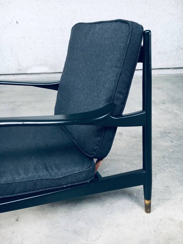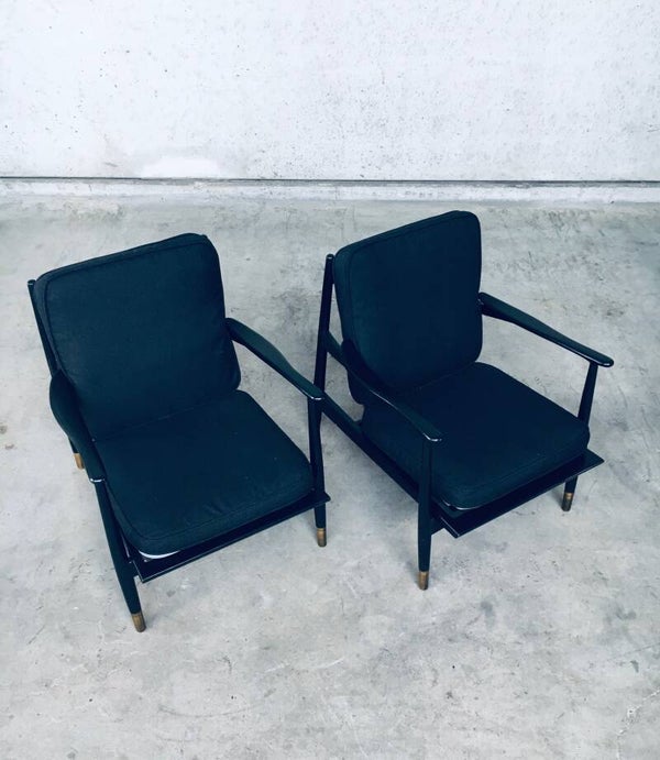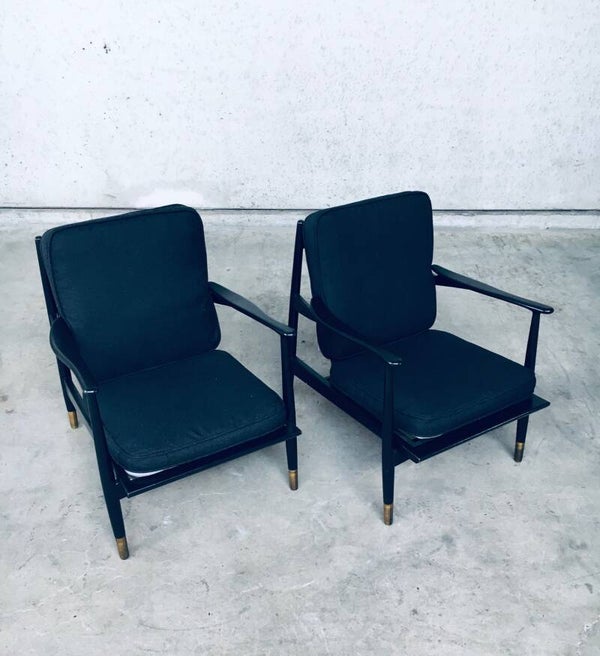Midcentury Modern Design Black Laquered Lounge Armchair Set, Denmark 1950's