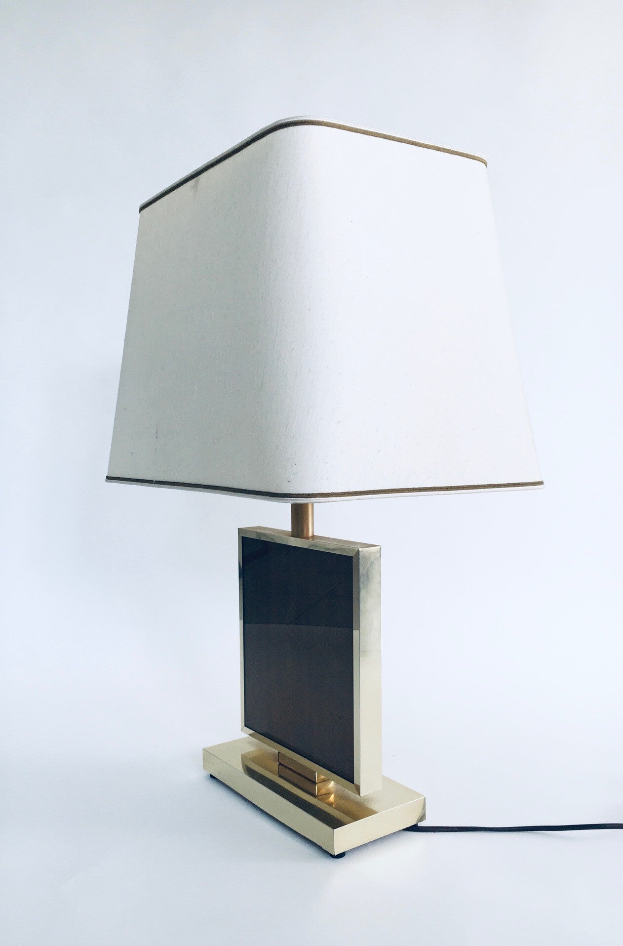 Vintage Hollywood Regency Style Gold Square Table Lamp, made in the 1970's. Gold metal base with stone like inset and original lamp shade. In very good condition. Measures 68cm x 31cm x 46cm.