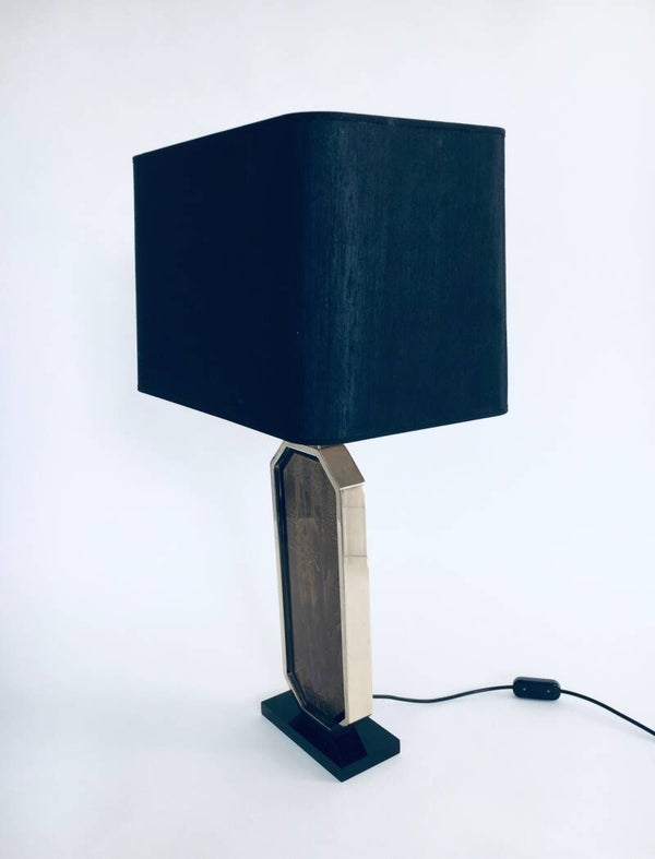 Hollywood Regency Brass Etched Maho Table Lamp by George Mathias for M2000, Belgium 1970's