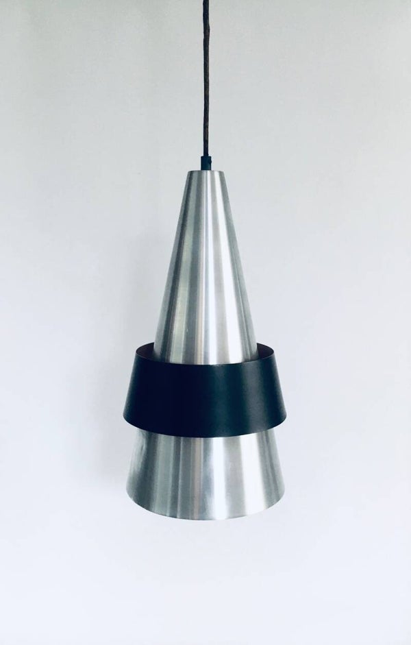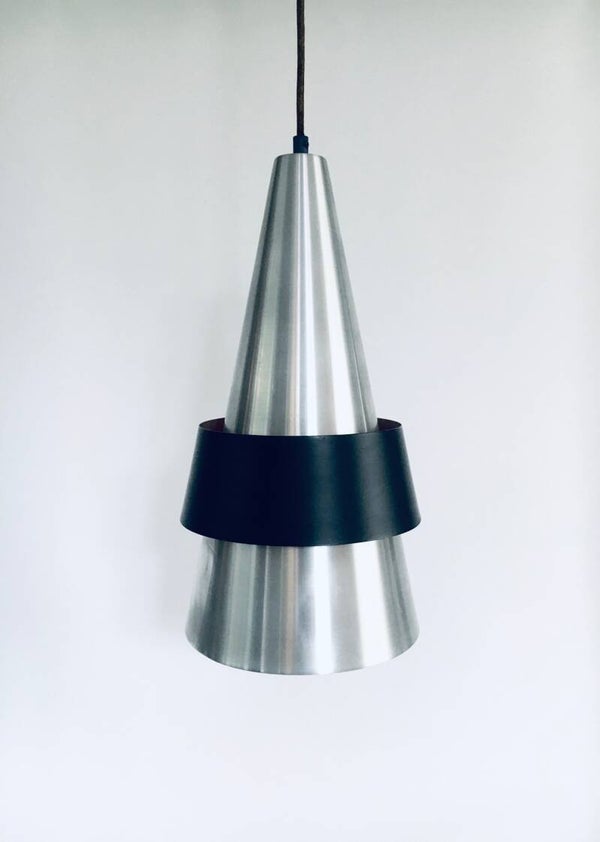 Vintage Midcentury Modern Scandinavian Design CORONA Pendant Lamp by Jo Hammerborg for Fog & Morup, Denmark 1960's. Chrome and black metal construction. All original and in working order. Measures 47cm x 23,5cm x 23,5cm.