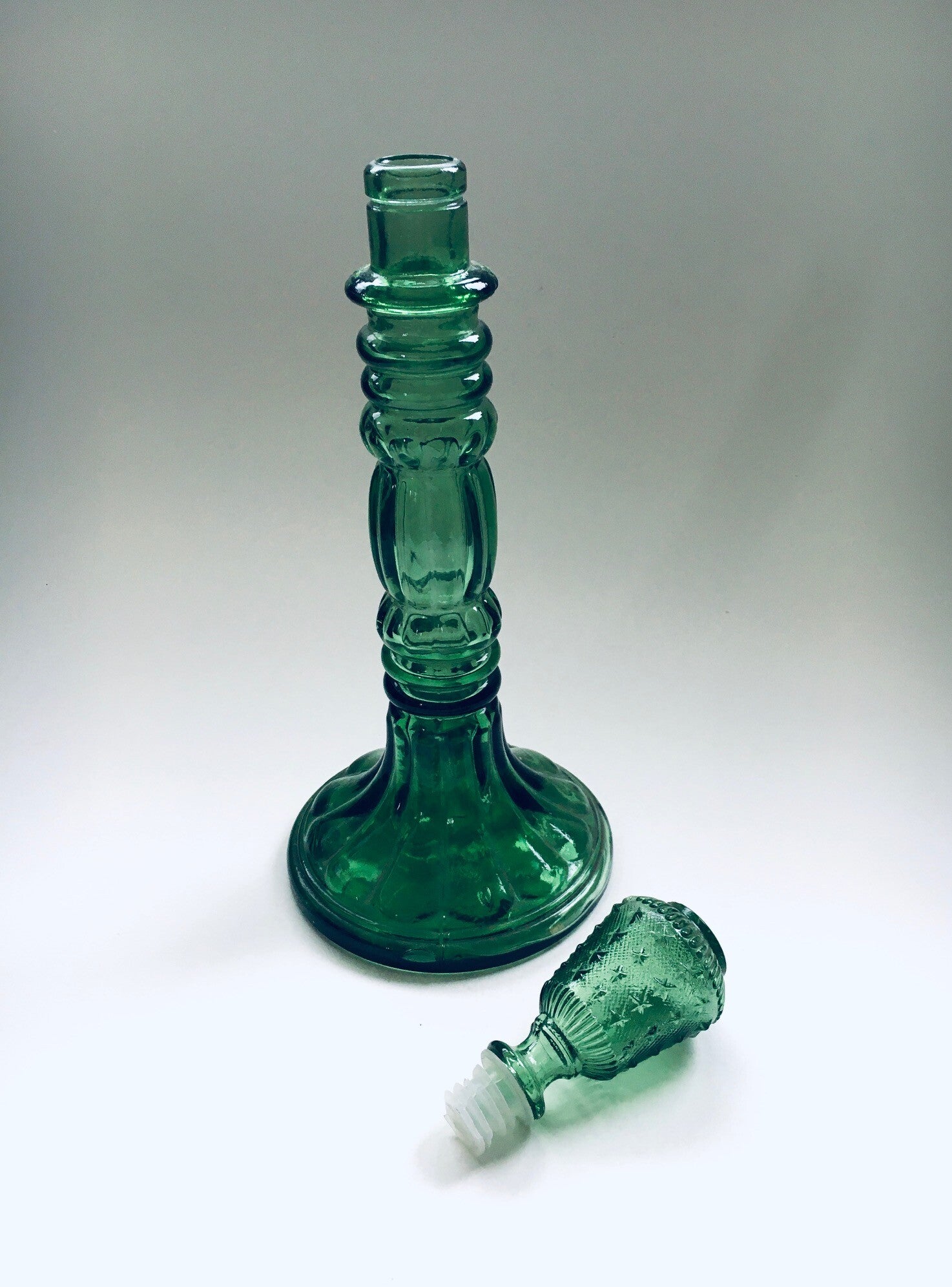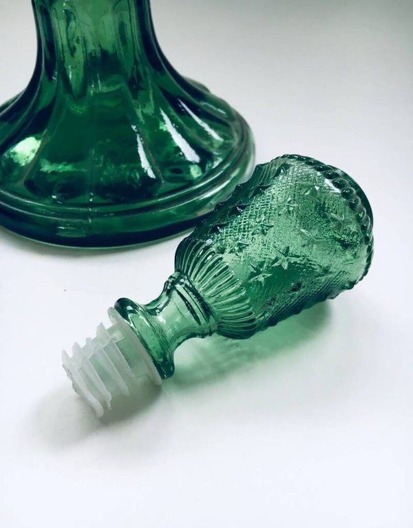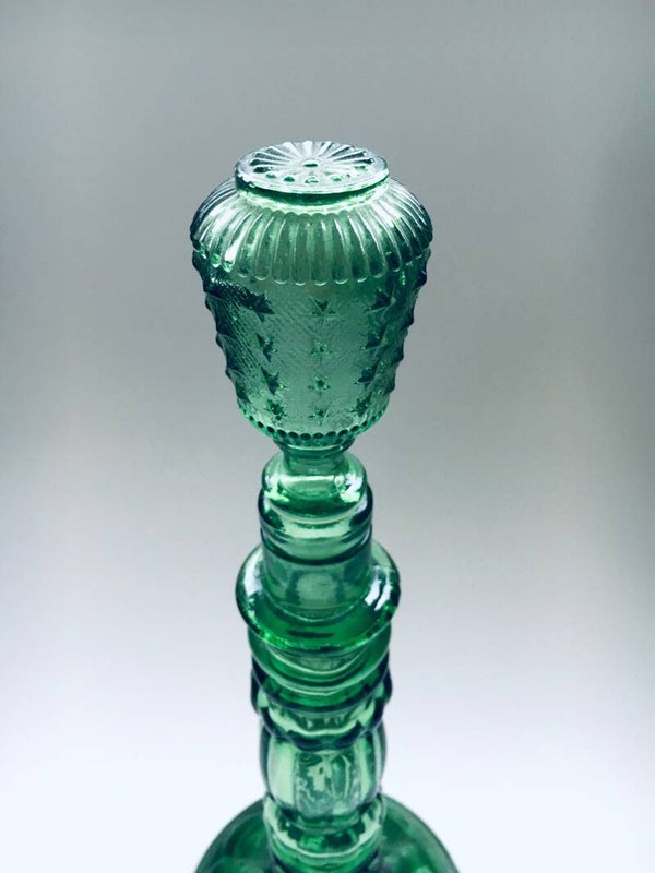Vintage Empoli Design Green Glass Decanter Bottle, Murano Italy 1960's