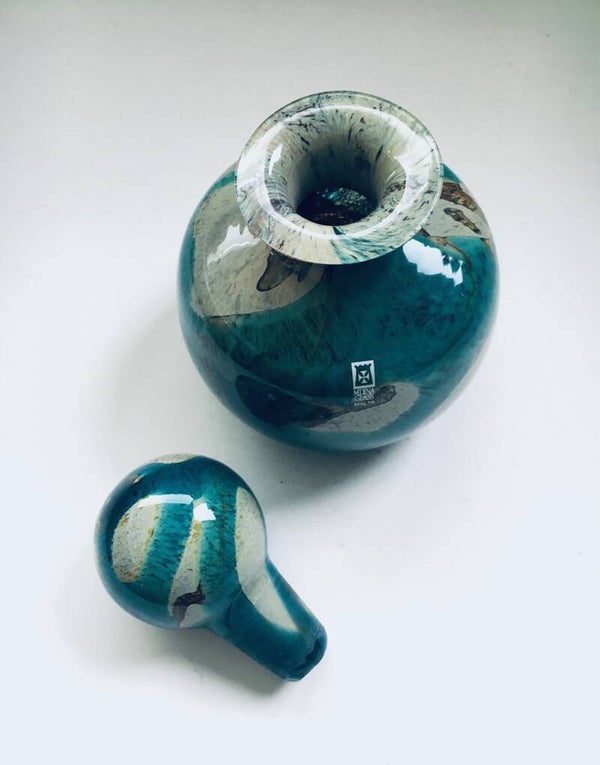 Vintage Mdina Signed Art Glass Vase with Stopper, Malta 1970's