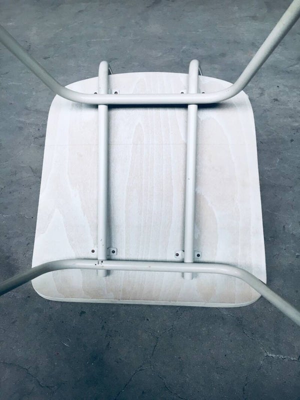 Vintage Midcentury Modern Dutch Design Dress Boy Chair by Wim Rietveld for Auping, Netherlands 1950's. Metal frame with bentwood seat and steerhead backrest in original light grey color. In very good condition. Measures 42cm x 82cm x 45cm.