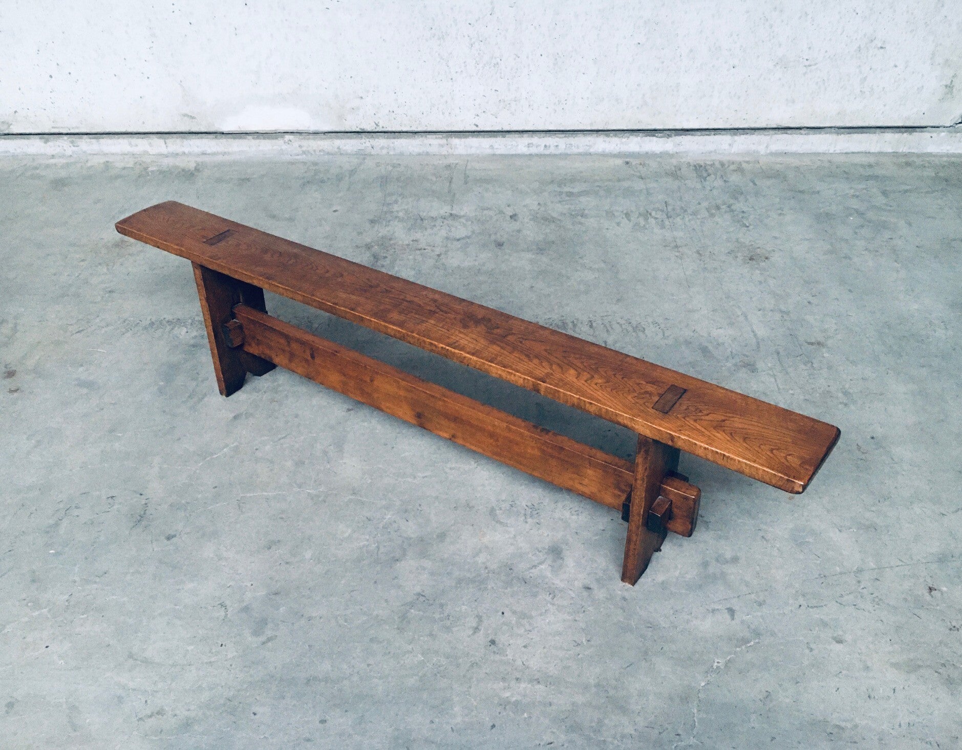 Vintage Midcentury Brutalist Handcrafted Design Oak Side Bench in the style of Pierre Chapo, France 1960's. Solid Oak wood handmade side bench with peg construction. In very good original condition. Measures 190cm x 46cm x 19cm.
